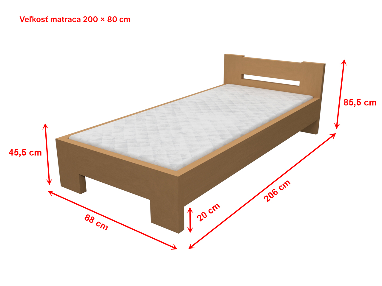Možnosť objednať v rozmere 200 x 80 cm alebo 200 x 90 cm, výška čela 79,5 cm.
