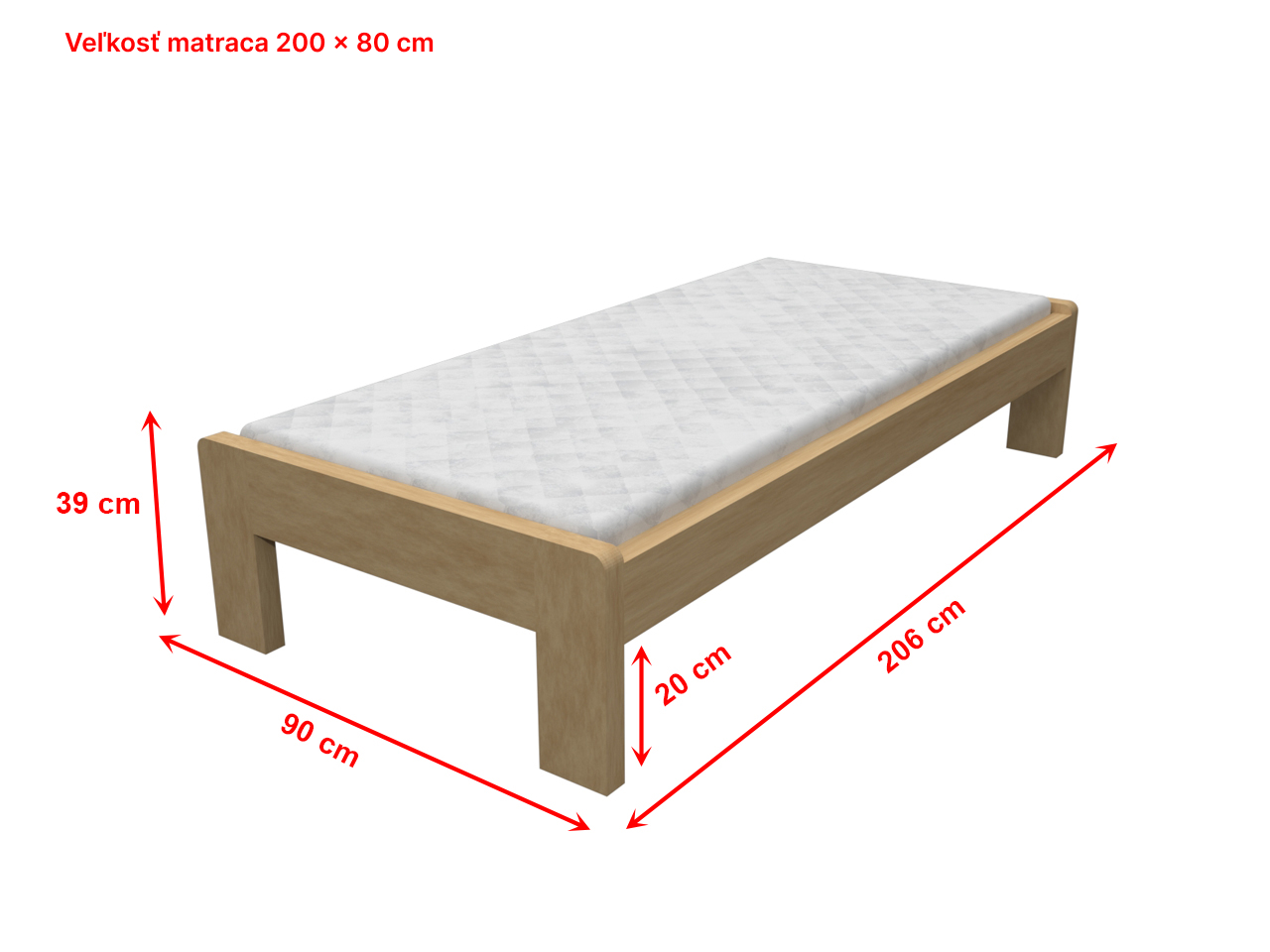 Posteľ vrátane roštu. Pohodlná drevená posteľ z masívu pre vaše relaxovanie a odpočinok. Posteľ má pevnú konštrukciu z kvalitného smrekového prírodného dreva. Matrac za príplatok. Možno objednať v rozmere 200 x 80 cm alebo 200 x 90 cm.
