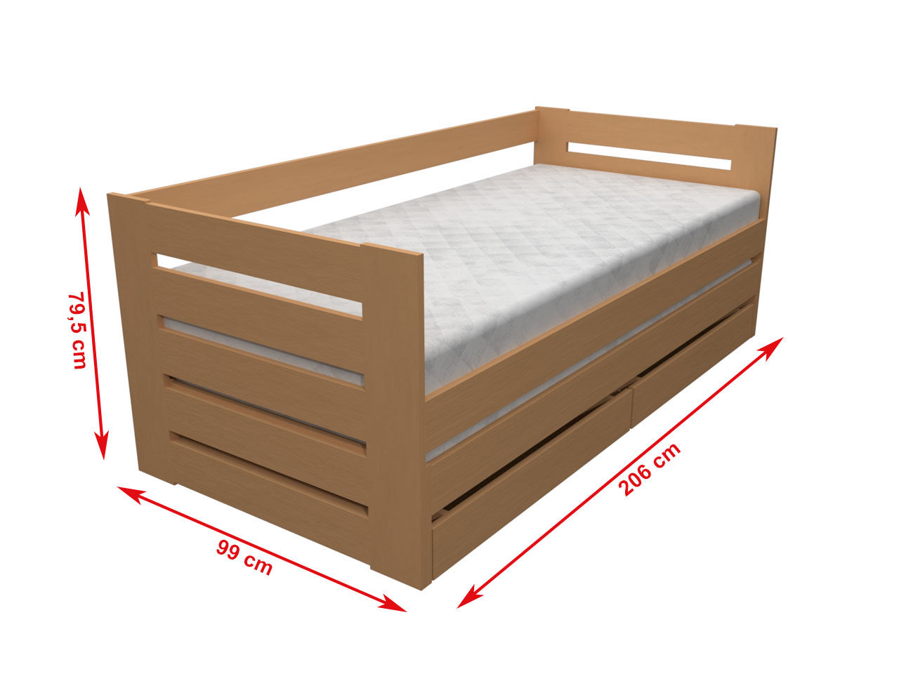 Posteľ vrátane roštu. Pohodlná drevená posteľ z masívu pre Vašu relaxáciu a oddych. Posteľ má pevnú konštrukciu z poctivej smrekovej prírodnej dreviny. Matrac za príplatok. Rozmer ložnej plochy 90 x 200 cm.