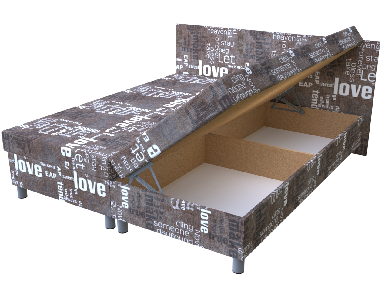 Pohodlná celočalúnená dvojposteľ na nohách pre Vašu relaxáciu a odpočinok. Dvojposteľ má pevnú konštrukciu z drevotrieskových dosiek. Okrem pohodlného ležania ponúka aj bohatý úložný priestor, otvárajúci sa kvalitným pružinovým mechanizmom, do ktorého umiestnite periny, vankúše a ďalšie veci.