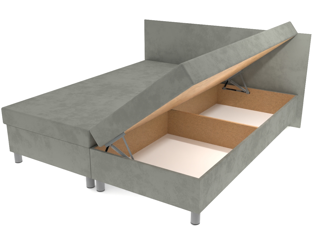 Pohodlná celočalúnená dvojposteľ na nohách pre Vašu relaxáciu a odpočinok. Dvojposteľ má pevnú konštrukciu z drevotrieskových dosiek. Okrem pohodlného ležania ponúka aj bohatý úložný priestor, otvárajúci sa kvalitným pružinovým mechanizmom, do ktorého umiestnite periny, vankúše a ďalšie veci.