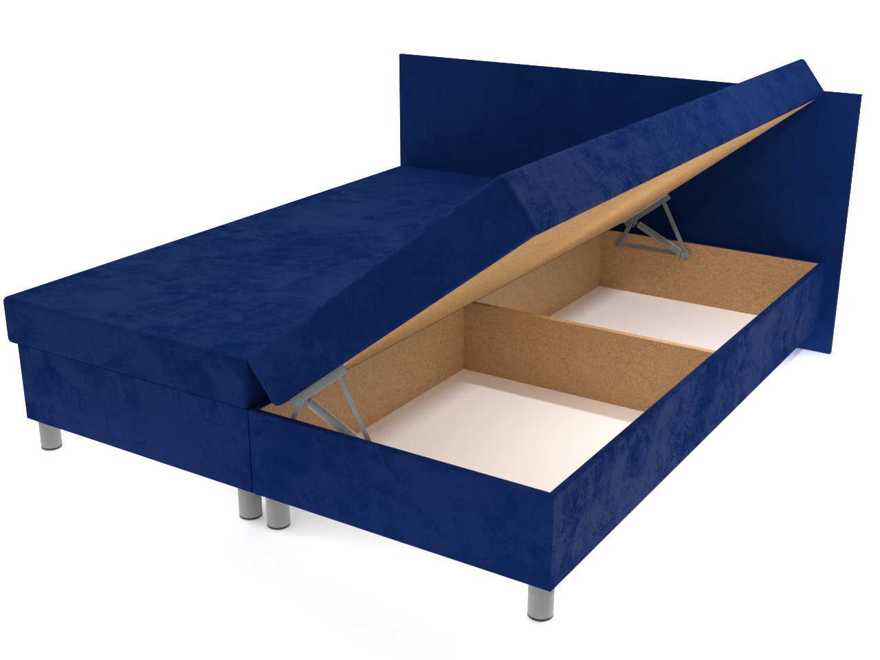Pohodlná celočalúnená dvojposteľ na nohách pre Vašu relaxáciu a odpočinok. Dvojposteľ má pevnú konštrukciu z drevotrieskových dosiek. Okrem pohodlného ležania ponúka aj bohatý úložný priestor, otvárajúci sa kvalitným pružinovým mechanizmom, do ktorého umiestnite periny, vankúše a ďalšie veci.