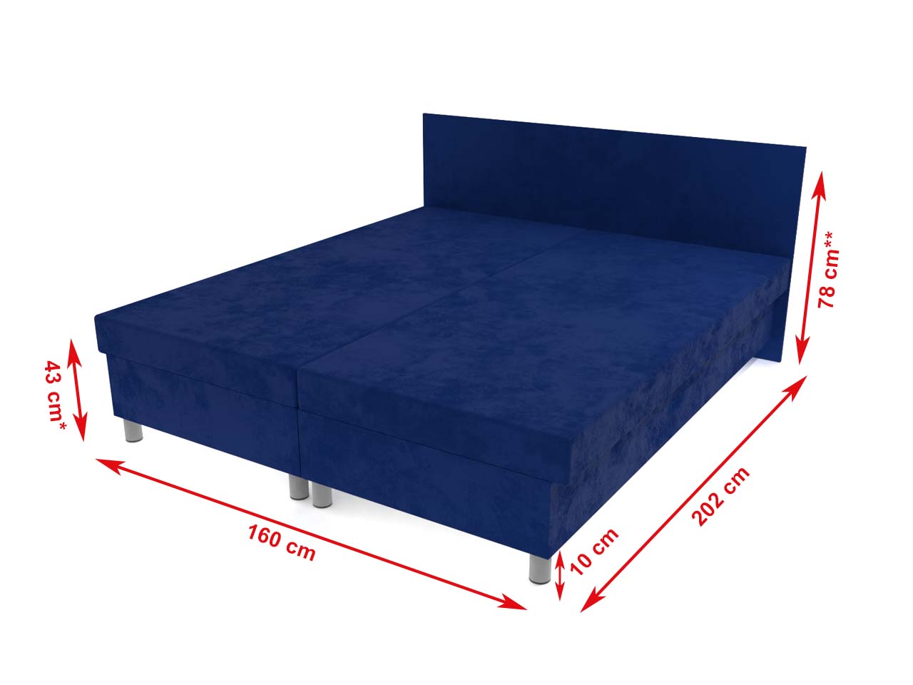 Dvojposteľ modrá 200x180 cm na nohách | Jednofarebné | 200 × 180 cm | Dvojpostele na nohách | Nábytok, čalúnené váľandy a postele - PrimaSpánok.sk