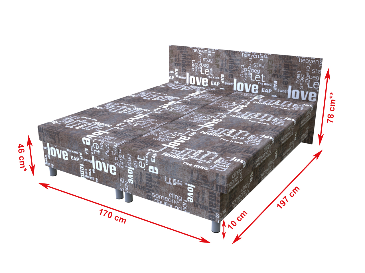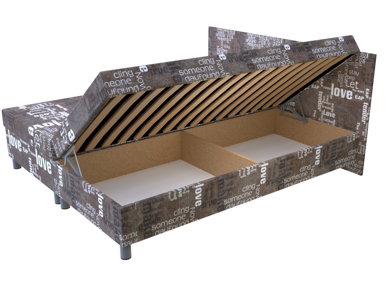 Dvojposteľ Words hnedá 195x170 cm lamelová na nohách | Vzorované | 195 × 170 cm | Lamelové na nohách | Dvojpostele na nohách | Nábytok, čalúnené váľandy a postele - PrimaSpánok.sk