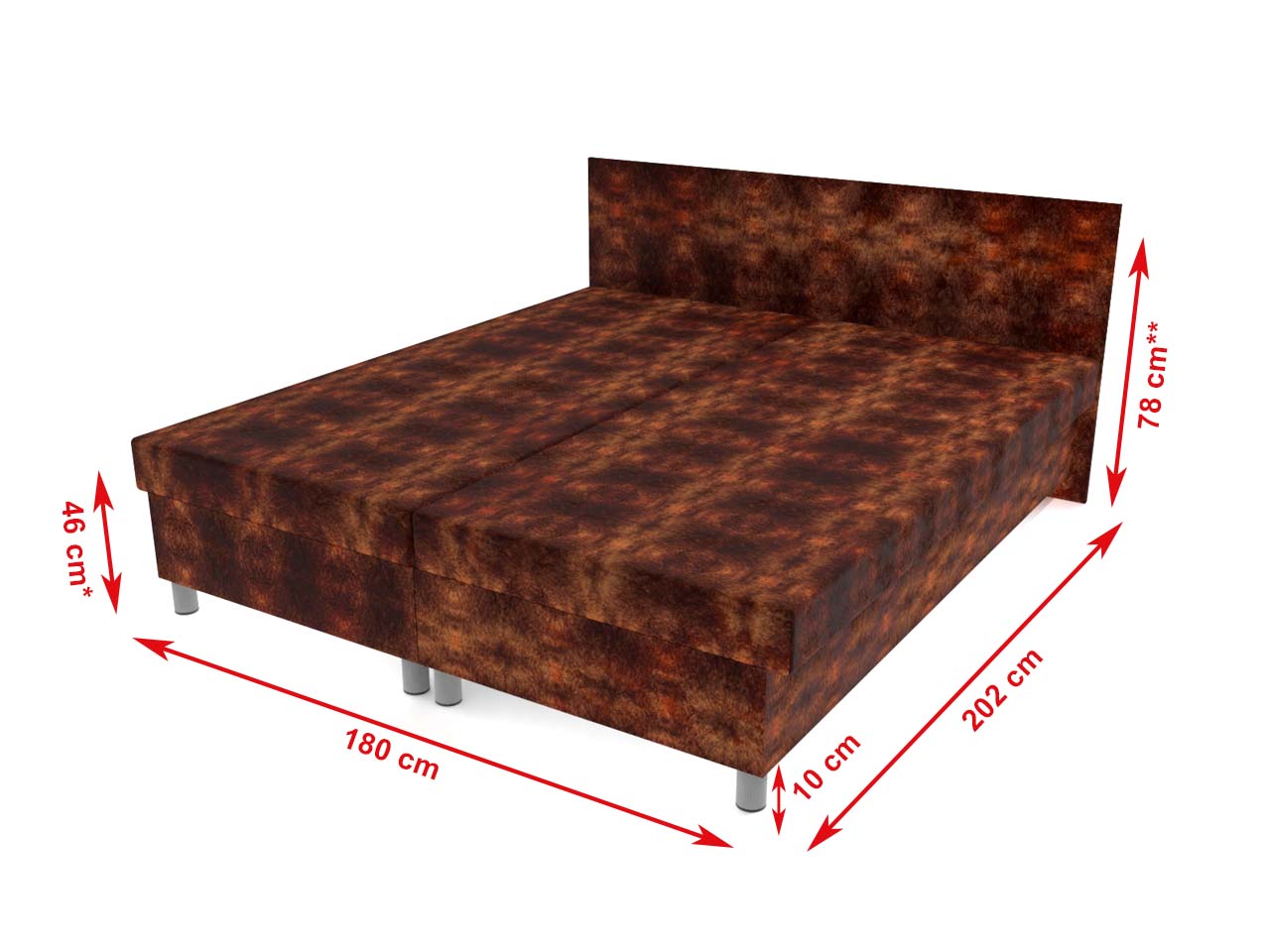 **Výška čela sa zmení v prípade prikúpenia zvýšenia úložného priestoru či voľby inej ako základný matrac