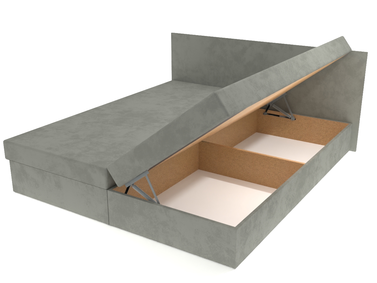 Pohodlná celočalúnená dvojposteľ pre Vašu relaxáciu a odpočinok. Dvojposteľ má pevnú konštrukciu z drevotrieskových dosiek. Okrem pohodlného ležania ponúka aj bohatý úložný priestor, otvárajúci sa kvalitným pružinovým mechanizmom, do ktorého umiestnite periny, vankúše a ďalšie veci.