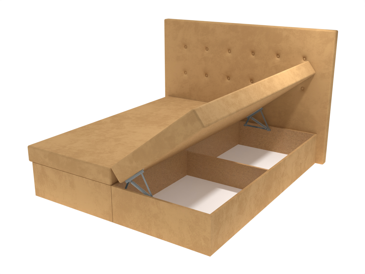 Pohodlná celočalúnená dvojposteľ pre Vašu relaxáciu a odpočinok. Dvojposteľ má pevnú konštrukciu z drevotrieskových dosiek. Okrem pohodlného ležania ponúka aj bohatý úložný priestor, otvárajúci sa kvalitným pružinovým mechanizmom, do ktorého umiestnite periny, vankúše a ďalšie veci.