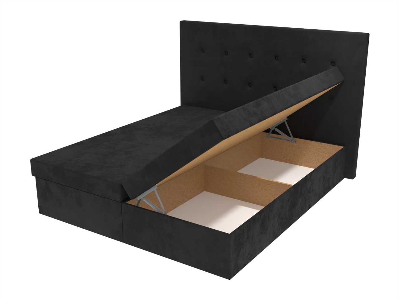 Pohodlná celočalúnená dvojposteľ pre Vašu relaxáciu a odpočinok. Dvojposteľ má pevnú konštrukciu z drevotrieskových dosiek. Okrem pohodlného ležania ponúka aj bohatý úložný priestor, otvárajúci sa kvalitným pružinovým mechanizmom, do ktorého umiestnite periny, vankúše a ďalšie veci.
