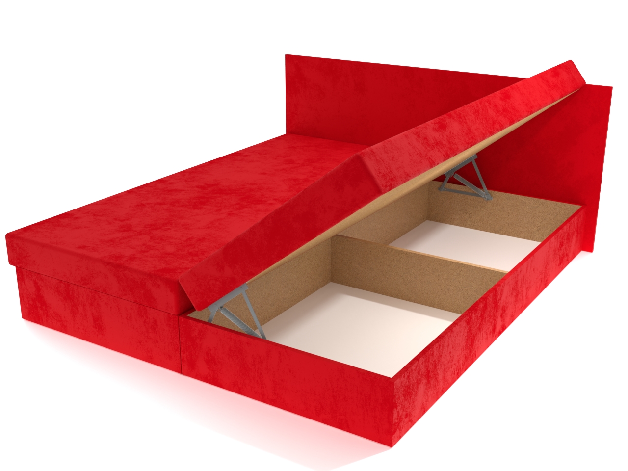 Pohodlná celočalúnená dvojposteľ pre Vašu relaxáciu a odpočinok. Dvojposteľ má pevnú konštrukciu z drevotrieskových dosiek. Okrem pohodlného ležania ponúka aj bohatý úložný priestor, otvárajúci sa kvalitným pružinovým mechanizmom, do ktorého umiestnite periny, vankúše a ďalšie veci.