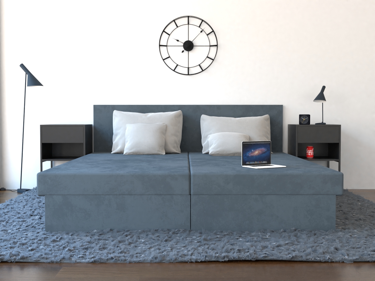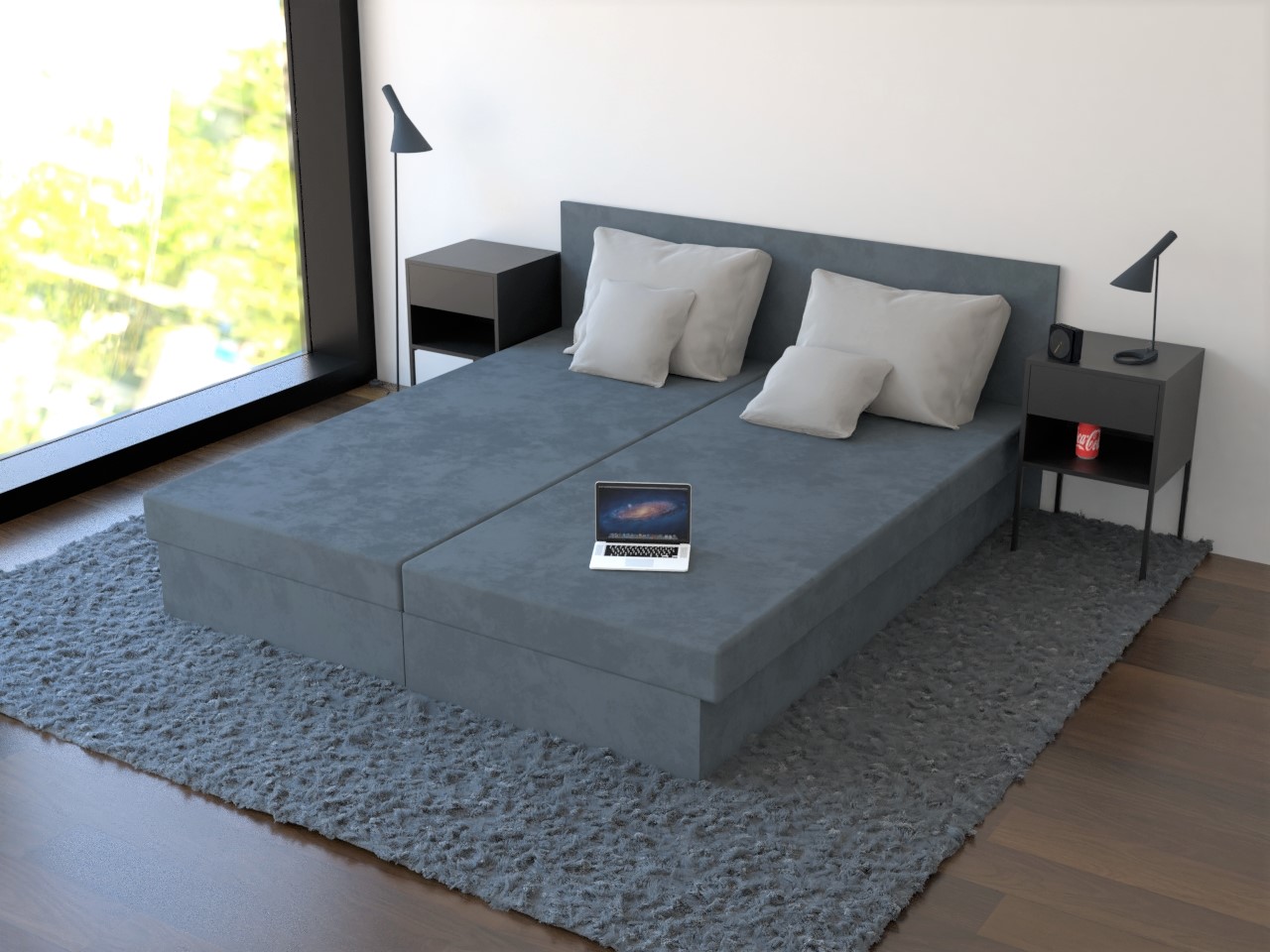• Dvojposteľ má pevnú konštrukciu z drevotrieskových dosiek a úložný priestor otvárajúci sa kvalitným pružinovým mechanizmom.