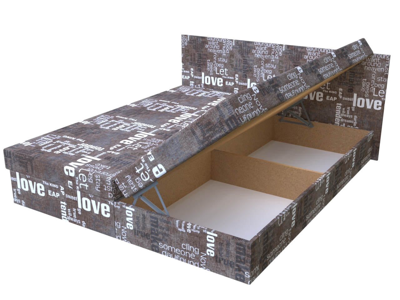 Pohodlná celočalúnená dvojposteľ pre Vašu relaxáciu a odpočinok. Dvojposteľ má pevnú konštrukciu z drevotrieskových dosiek. Okrem pohodlného ležania ponúka aj bohatý úložný priestor, otvárajúci sa kvalitným pružinovým mechanizmom, do ktorého umiestnite periny, vankúše a ďalšie veci.