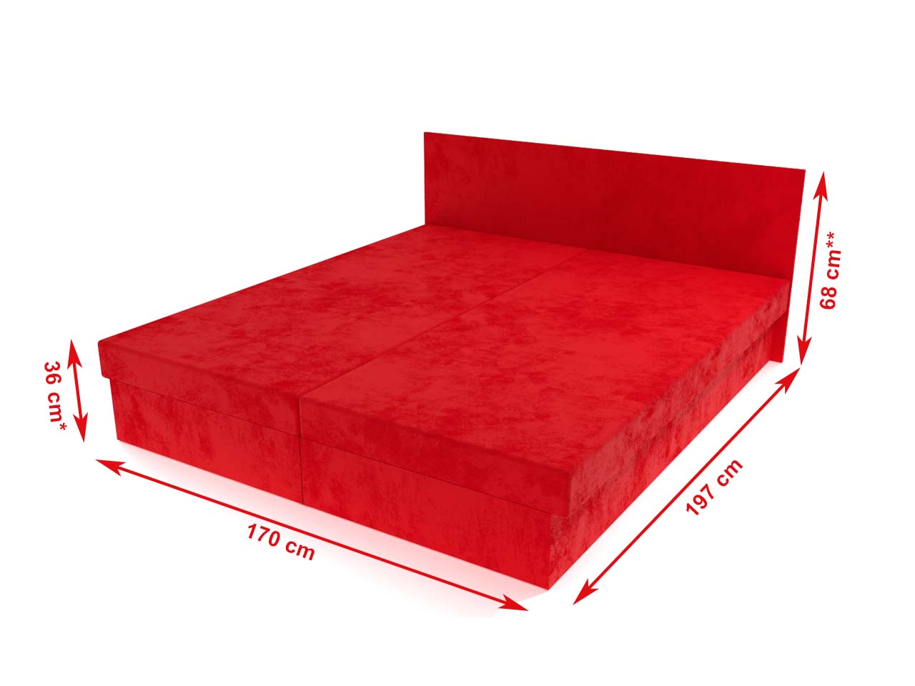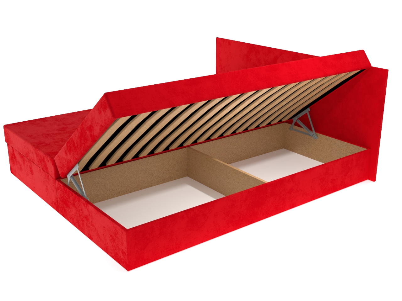 Pohodlná celočalúnená lamelová dvojposteľ pre Vašu relaxáciu a odpočinok. Dvojposteľ má pevnú konštrukciu z drevotrieskových dosiek. Okrem pohodlného ležania ponúka aj bohatý úložný priestor, otvárajúci sa kvalitným pružinovým mechanizmom, do ktorého umiestnite periny, vankúše a ďalšie veci.