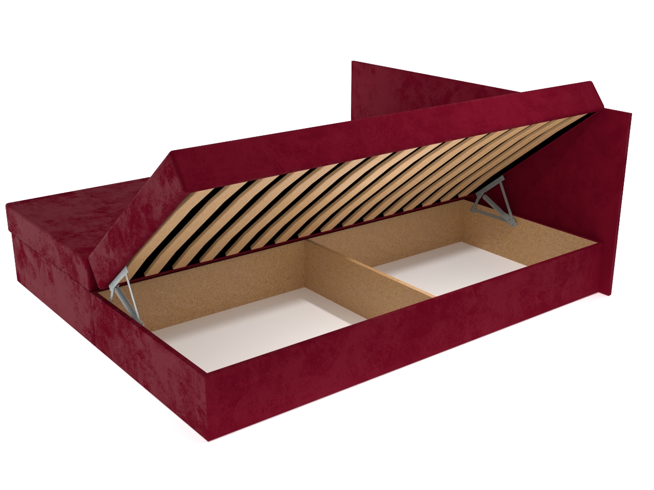 Pohodlná celočalúnená lamelová dvojposteľ pre Vašu relaxáciu a odpočinok. Dvojposteľ má pevnú konštrukciu z drevotrieskových dosiek. Okrem pohodlného ležania ponúka aj bohatý úložný priestor, otvárajúci sa kvalitným pružinovým mechanizmom, do ktorého umiestnite periny, vankúše a ďalšie veci.