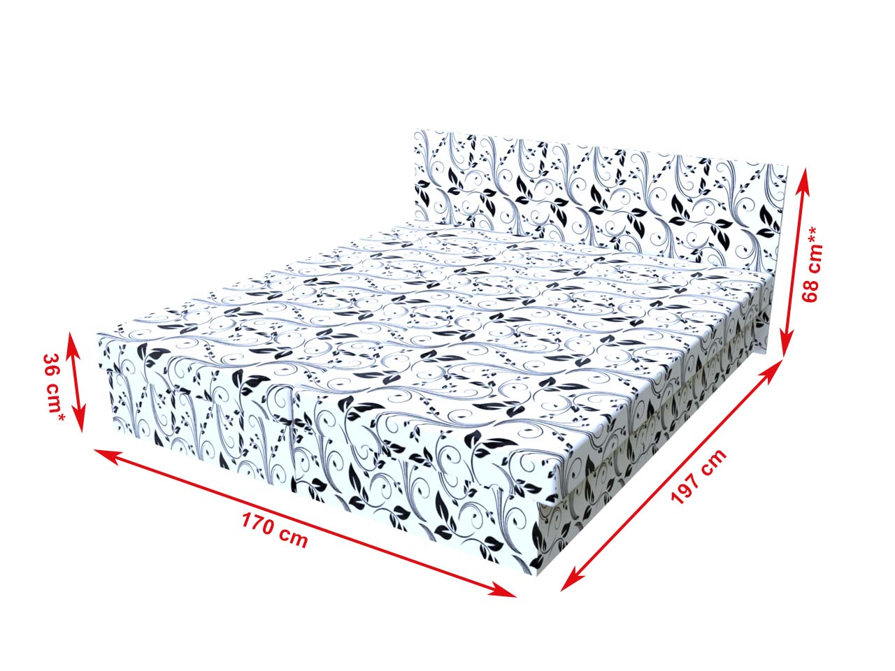 Výška ložnej plochy so základným matracom: 36 cm*