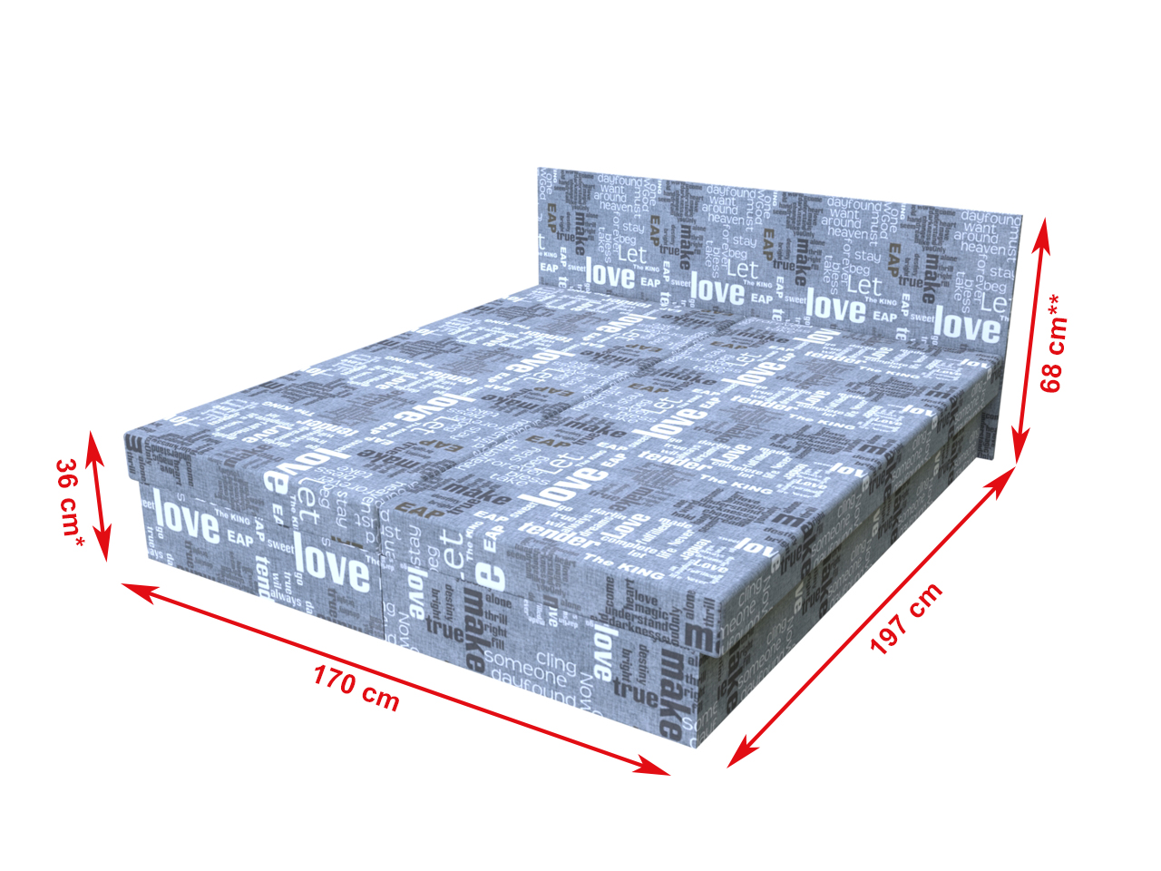 Dvojposteľ Words sivá 195x170 cm lamelová | Vzorované | 195 × 170 cm | Dvojpostele lamelové | Dvojpostele | Nábytok, čalúnené váľandy a postele - PrimaSpánok.sk