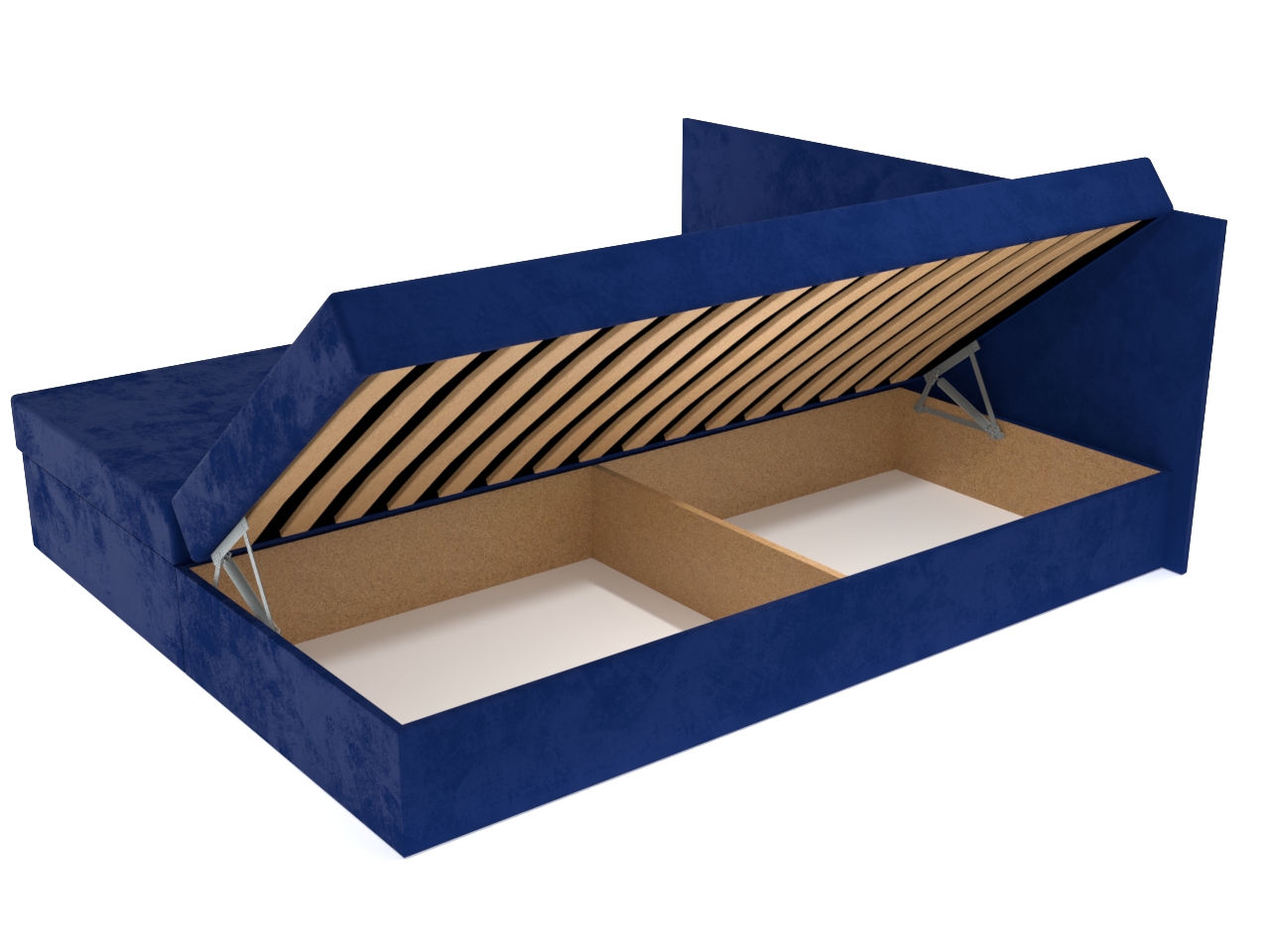 Pohodlná celočalúnená lamelová dvojposteľ pre Vašu relaxáciu a oddych. Dvojposteľ má pevnú konštrukciu z drevotrieskových dosiek. Okrem pohodlného ležania ponúka aj bohatý úložný priestor, otvárajúci sa kvalitným pružinovým mechanizmom, do ktorého umiestnite periny, vankúše a ďalšie veci.