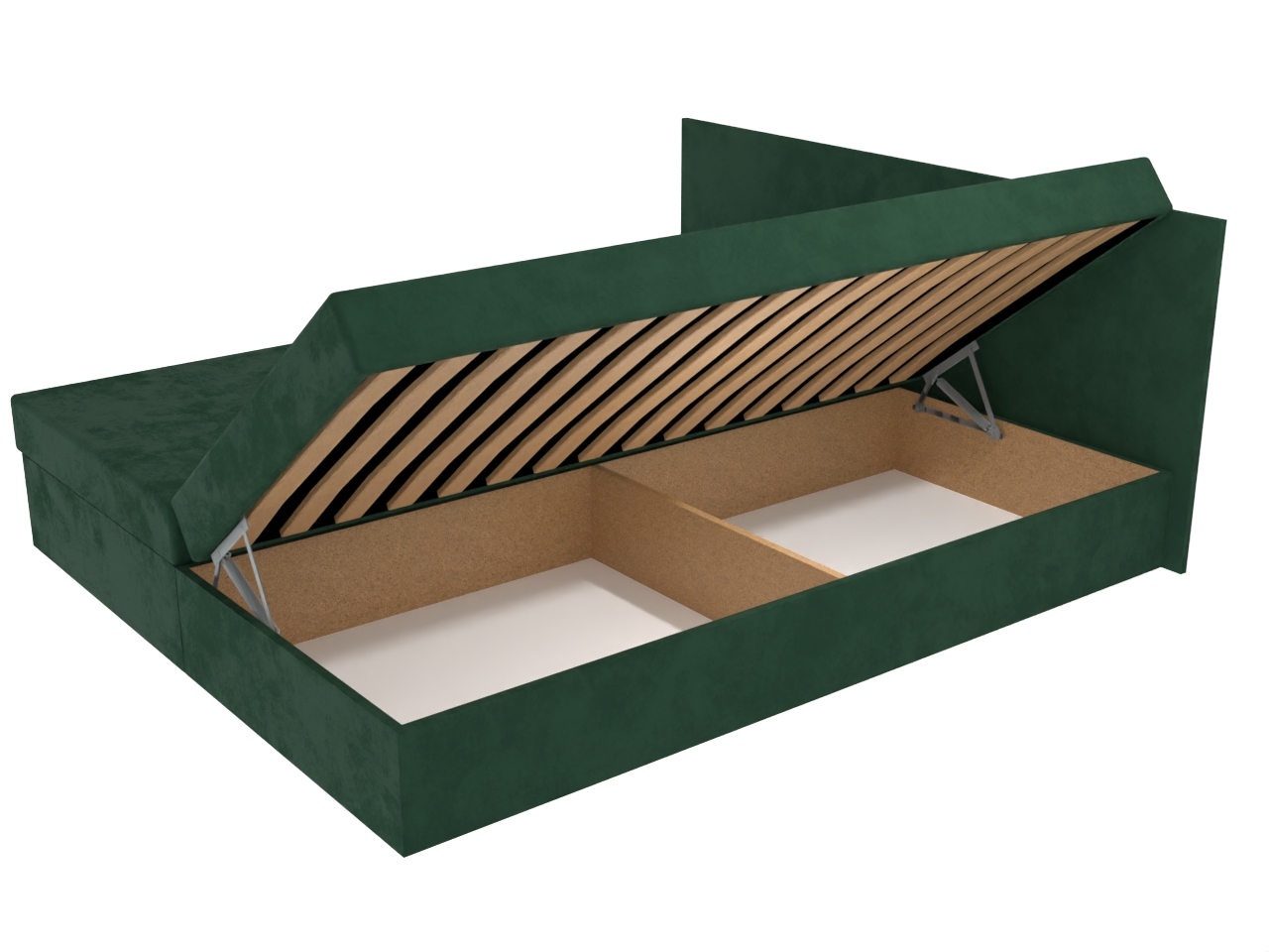 Pohodlná celočalúnená lamelová dvojposteľ pre Vašu relaxáciu a oddych. Dvojposteľ má pevnú konštrukciu z drevotrieskových dosiek. Okrem pohodlného ležania ponúka aj bohatý úložný priestor, otvárajúci sa kvalitným pružinovým mechanizmom, do ktorého umiestnite periny, vankúše a ďalšie veci.
