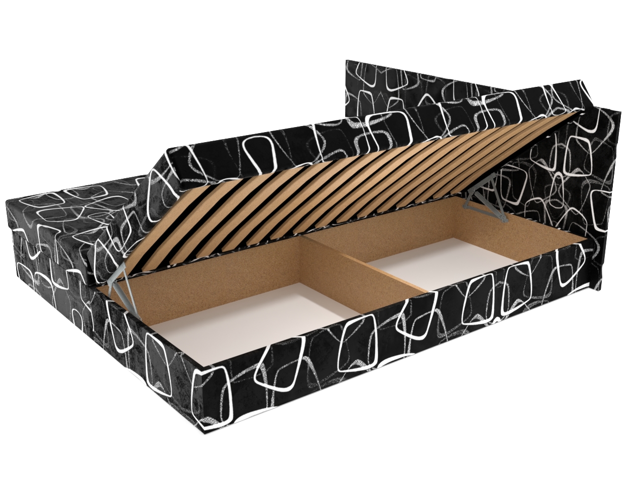 drevotrieskových dosiek. Okrem pohodlného ležania ponúka aj bohatý úložný priestor, otvárajúci sa kvalitným