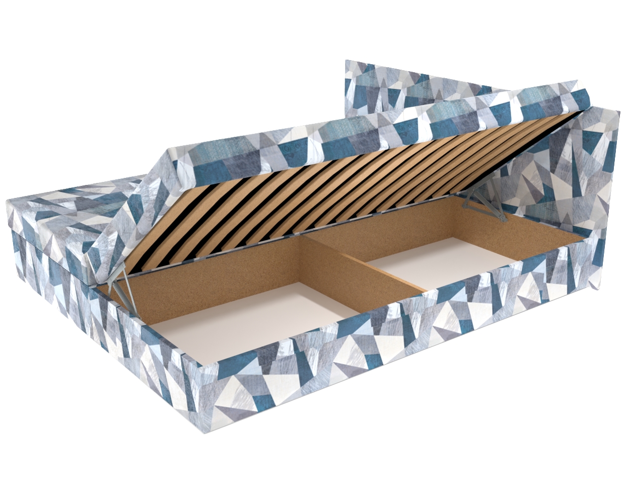 Pohodlná celočalúnená lamelová dvojposteľ pre Vašu relaxáciu a oddych. Dvojposteľ má pevnú konštrukciu z drevotrieskových dosiek. Okrem pohodlného ležania ponúka aj bohatý úložný priestor, otvárajúci sa kvalitným pružinovým mechanizmom, do ktorého umiestnite periny, vankúše a ďalšie veci.