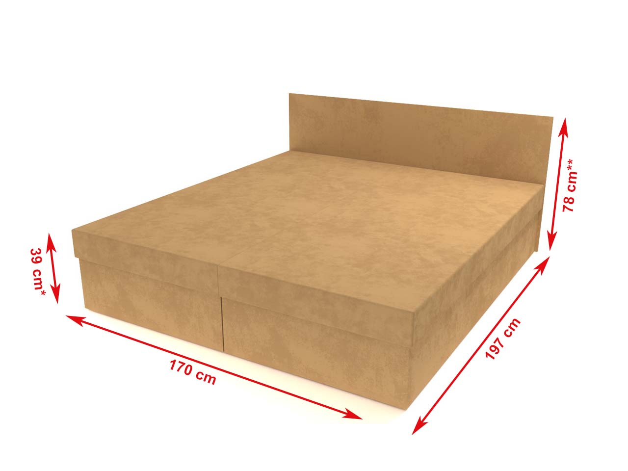 **Výška čela sa zmení v prípade prikúpenia zvýšenia úložného priestoru či voľby inej ako základný matrac