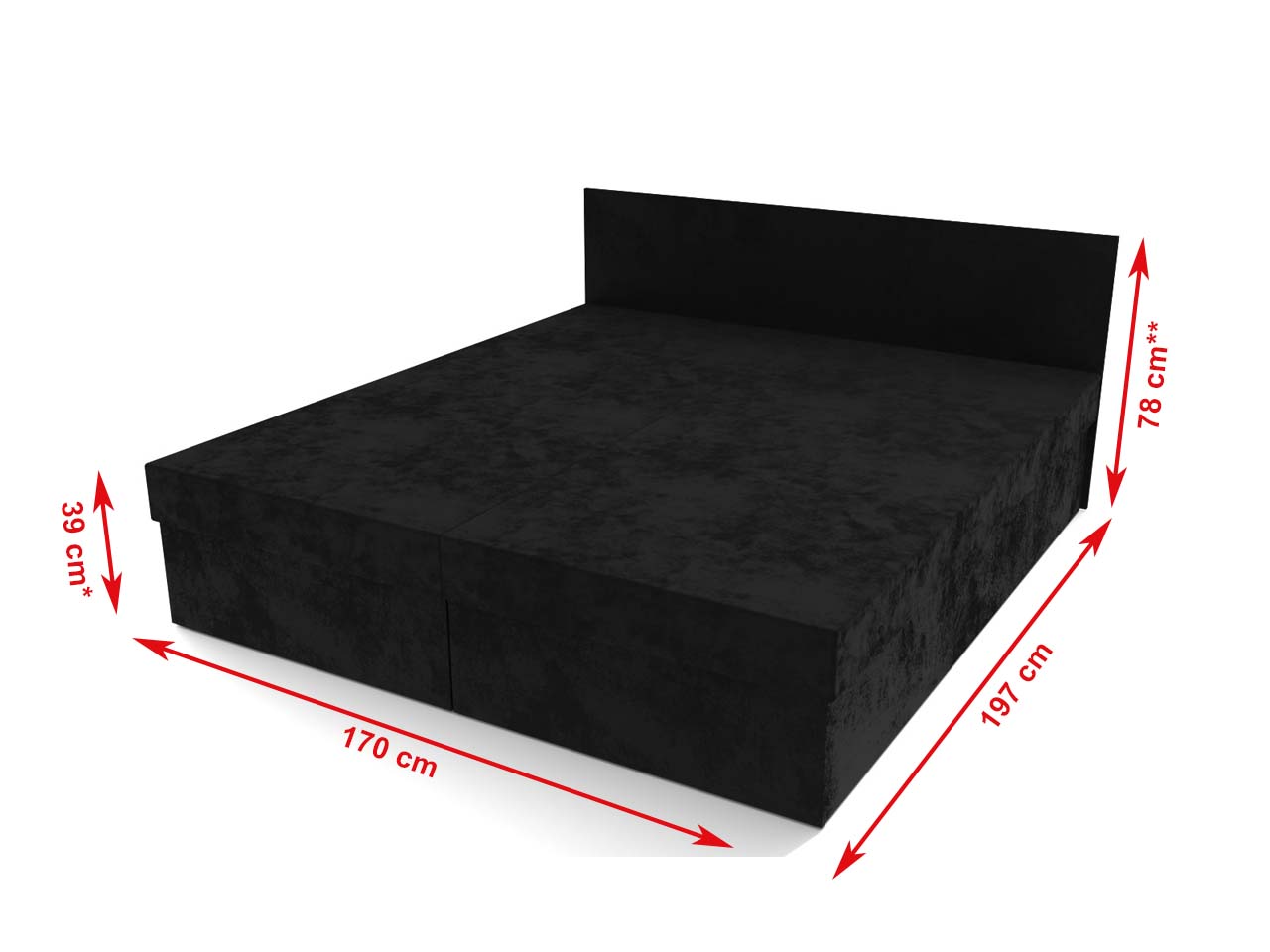 **Výška čela sa zmení v prípade prikúpenia zvýšenia úložného priestoru či voľby inej ako základný matrac