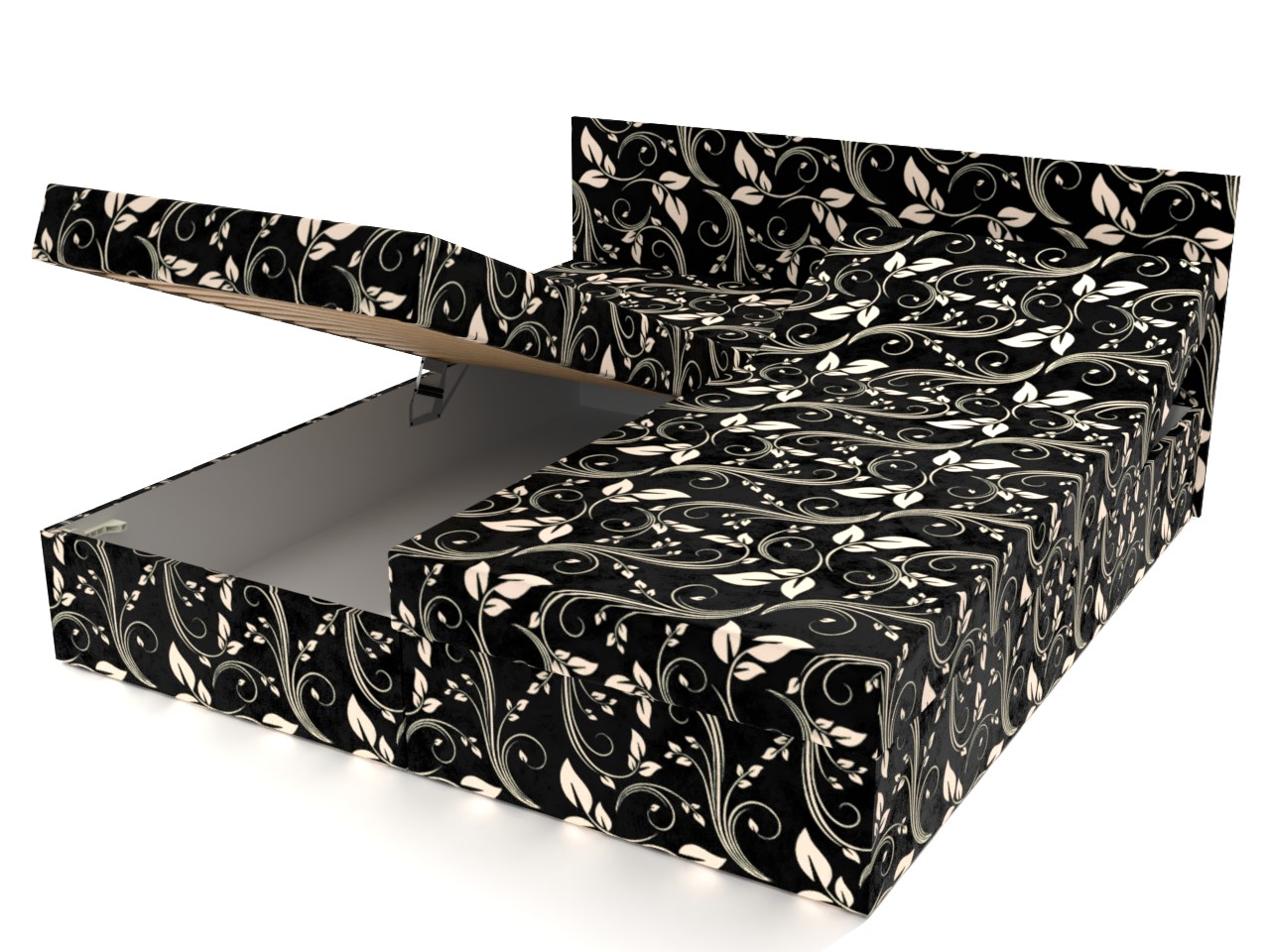 • Dvojposteľ má pevnú konštrukciu z drevotrieskových dosiek a úložný priestor otvárajúci sa kvalitným pružinovým mechanizmom.