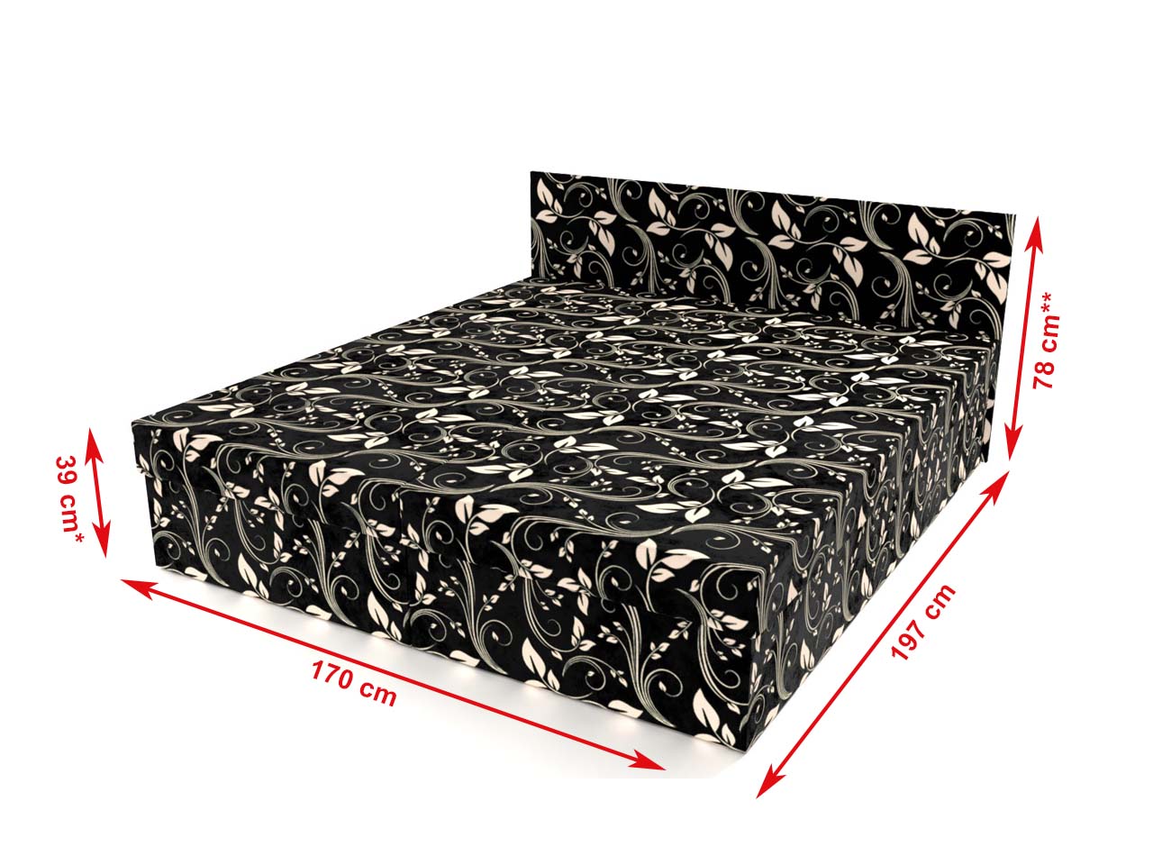 Výška ložnej plochy so základným matracom: 39 cm*