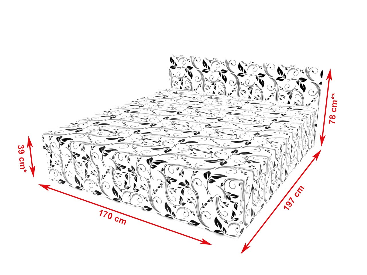 • Dvojposteľ má pevnú konštrukciu z drevotrieskových dosiek a úložný priestor otvárajúci sa kvalitným pružinovým mechanizmom.