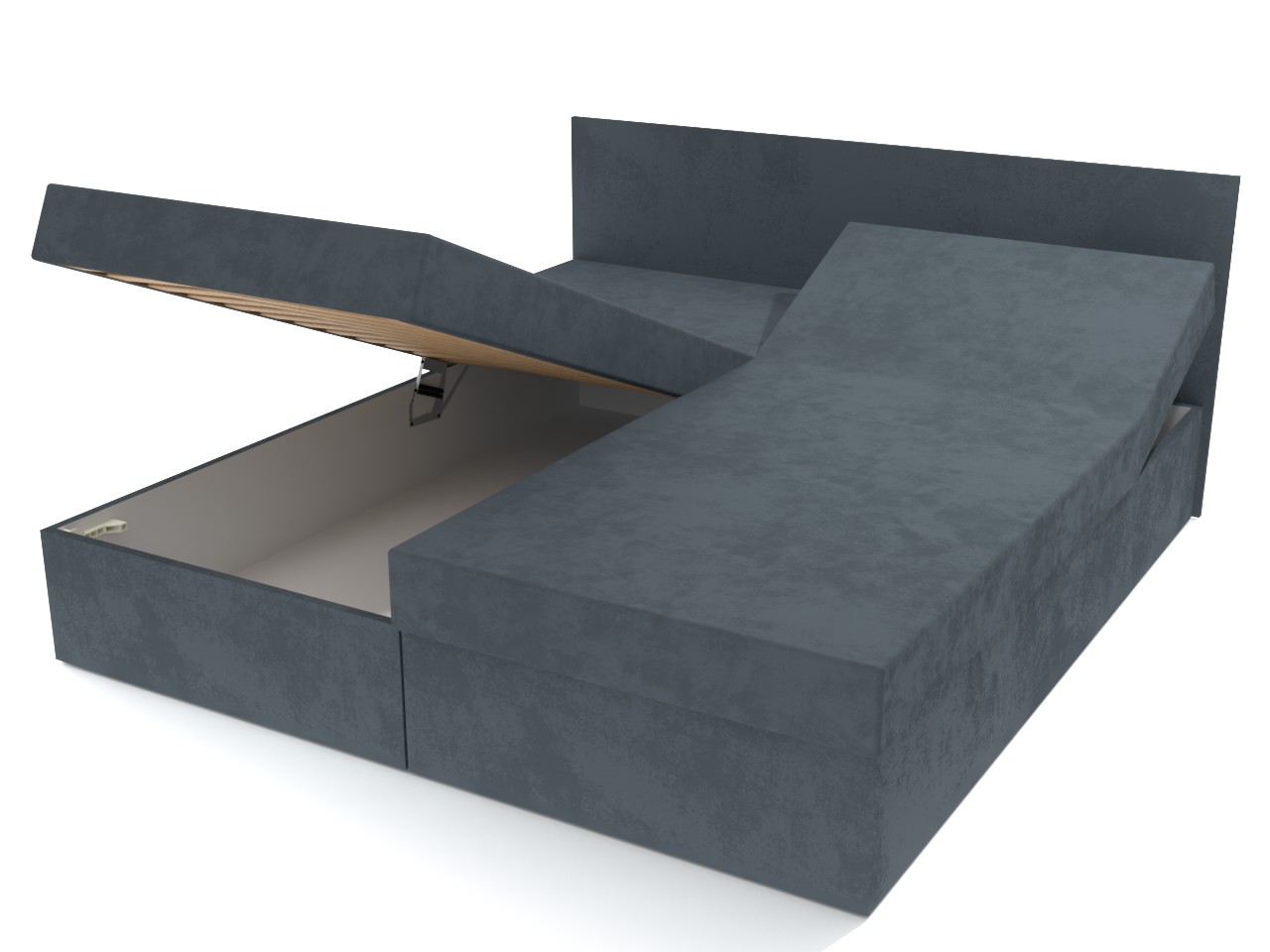 Pohodlná polohovacia celočalúnená dvojposteľ s úložným priestorom od českého výrobcu. Dvojposteľ má pevnú konštrukciu z drevotrieskových dosiek. Posteľ je vybavená kvalitným pružinovým mechanizmom, ktorý sa dá polohovať pod hlavou a zároveň sa otvára od nôh pre prístup do úložného priestoru. Úložný priestor je dostatočne veľký na uloženie periny, vankúša a ďalších vecí.