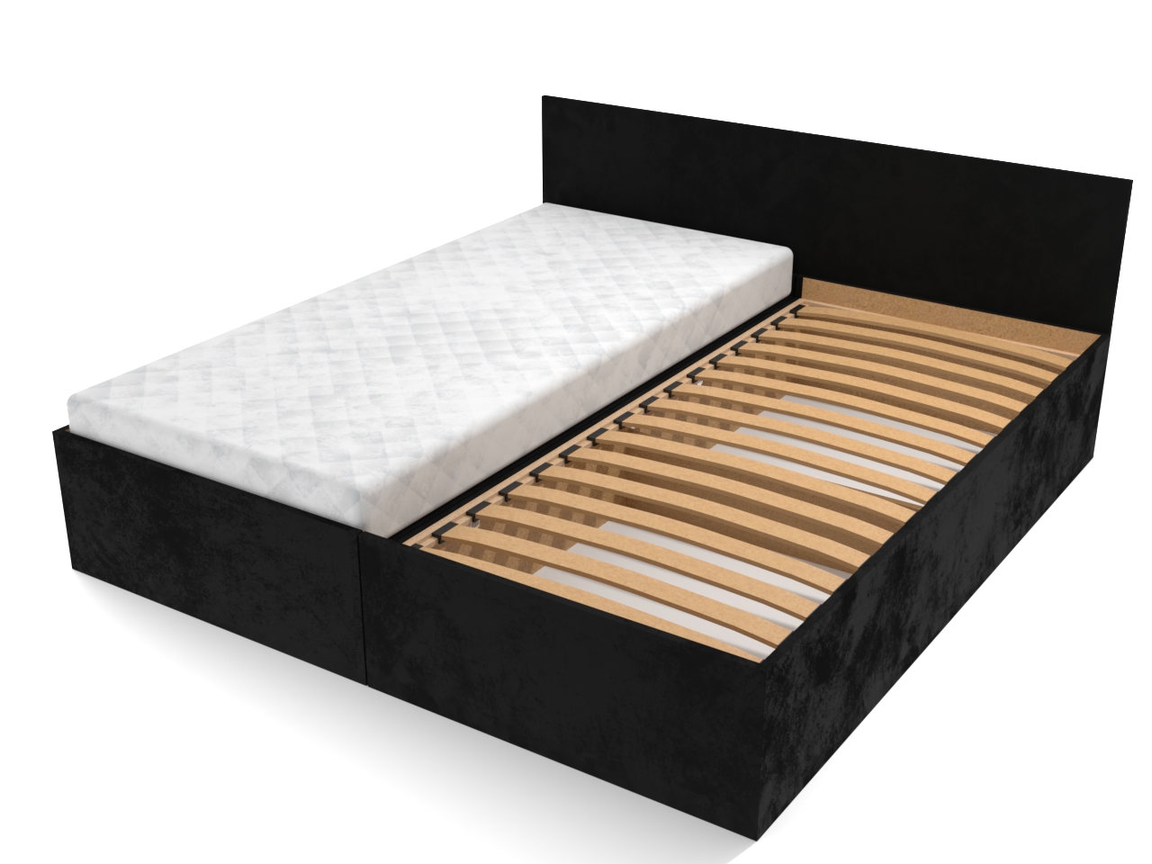 • Posteľ je na každej strane vybavená kvalitným lamelovým roštom, ktorého otvorením získate prístup k priestornému úložnému priestoru, ktorý je vhodný na uloženie perín, vankúšov a ďalších vecí