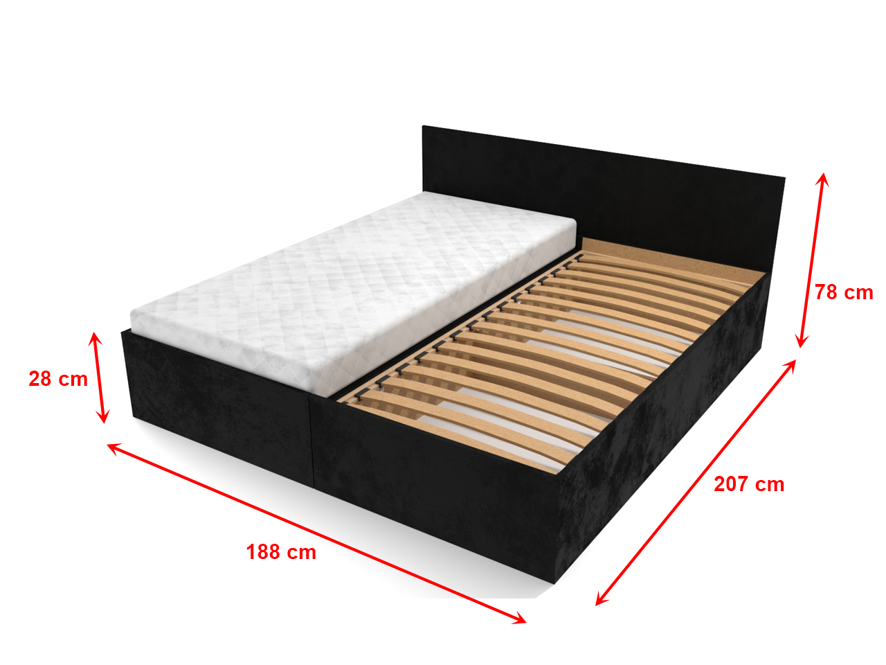 *Výška rámu postele sa zmení v prípade prikúpenia zvýšenia úložného priestoru o 5 alebo 10 cm.
