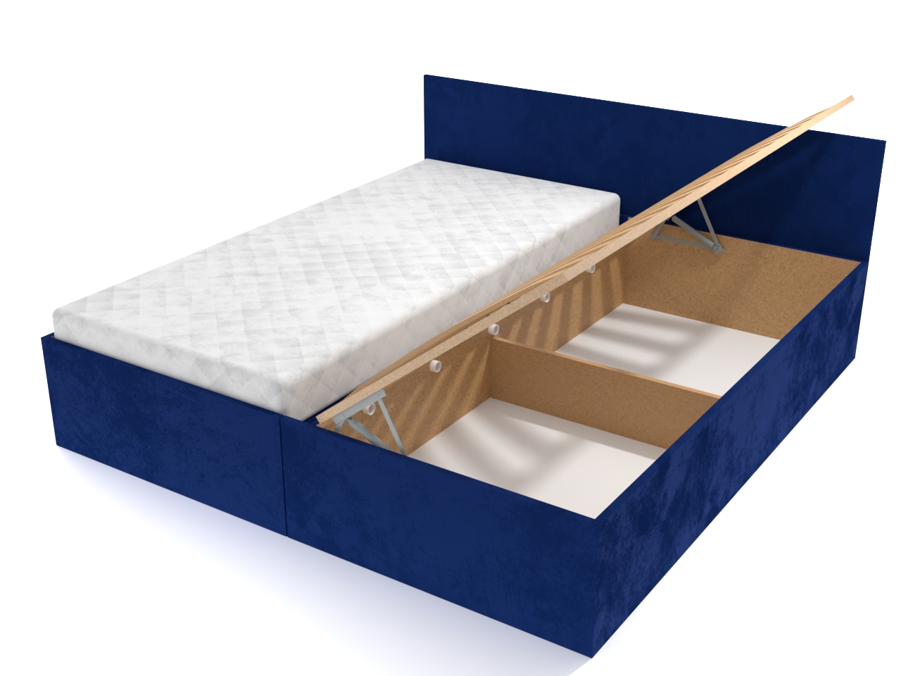 • Posteľ je na každej strane vybavená kvalitným lamelovým roštom, ktorého otvorením získate prístup k priestornému úložnému priestoru, ktorý je vhodný na uloženie perín, vankúšov a ďalších vecí