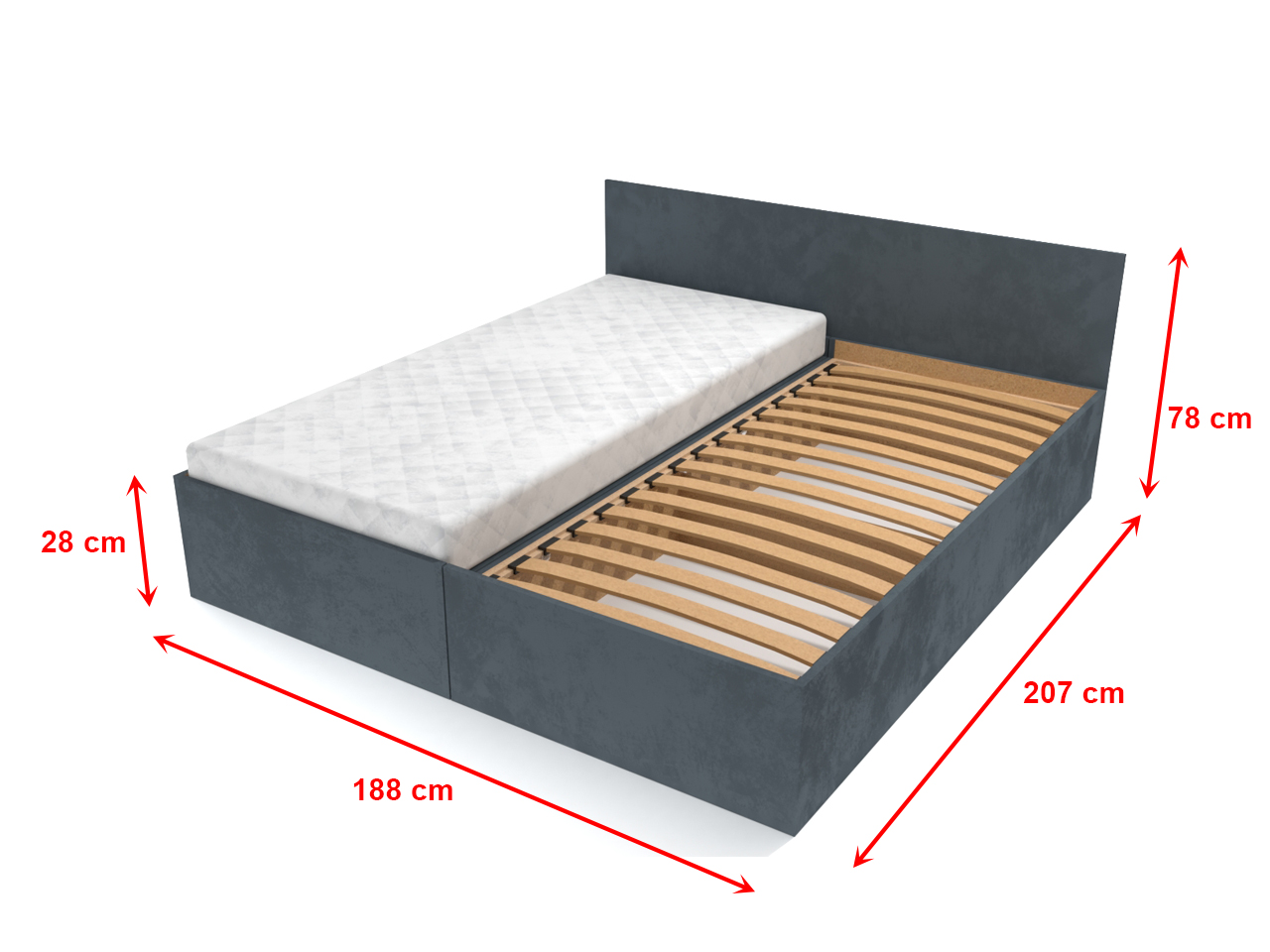 Pohodlná celočalúnená dvojposteľ pre Vašu relaxáciu a odpočinok. Dvojposteľ má pevnú konštrukciu z drevotrieskových dosiek. Posteľ je vybavená kvalitným lamelovým roštom, ktorého otvorením získate prístup k priestrannému úložnému priestoru, ktorý je vhodný na uloženie perín, vankúšov a ďalších vecí.