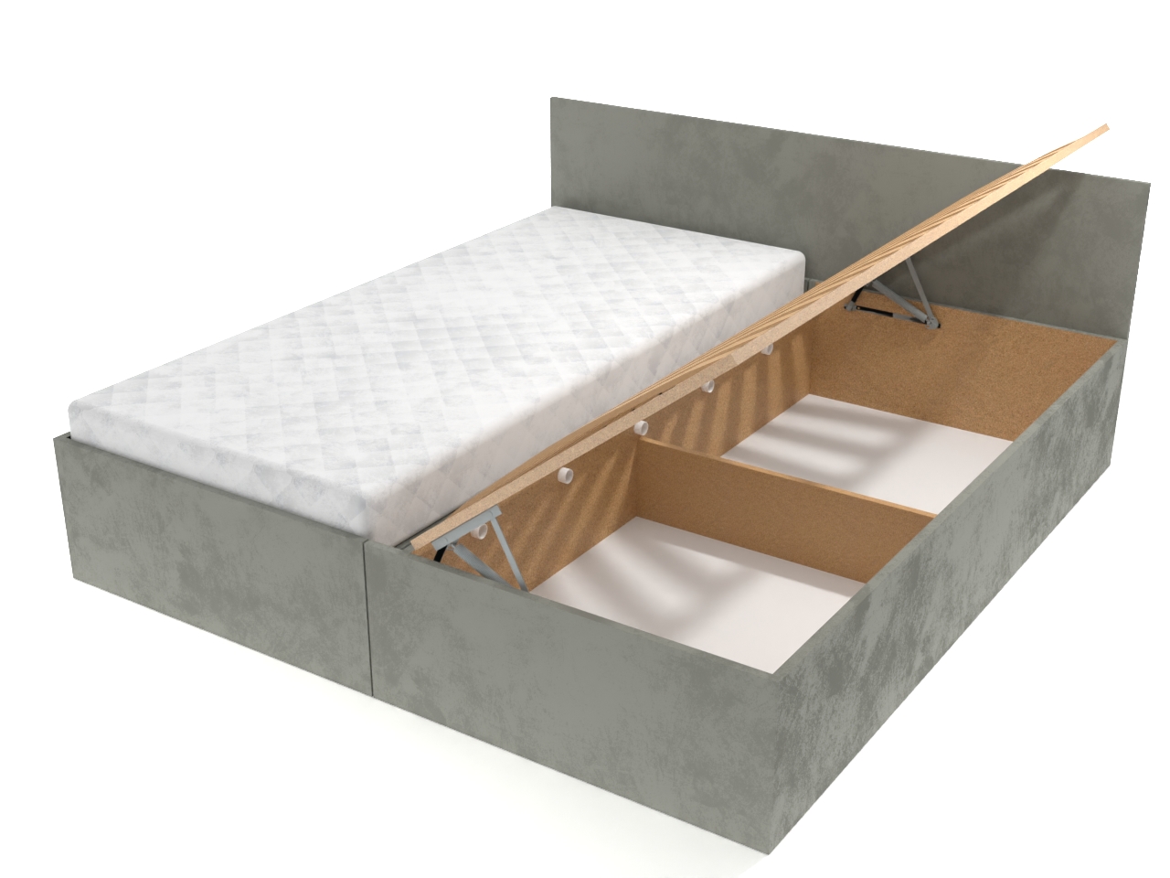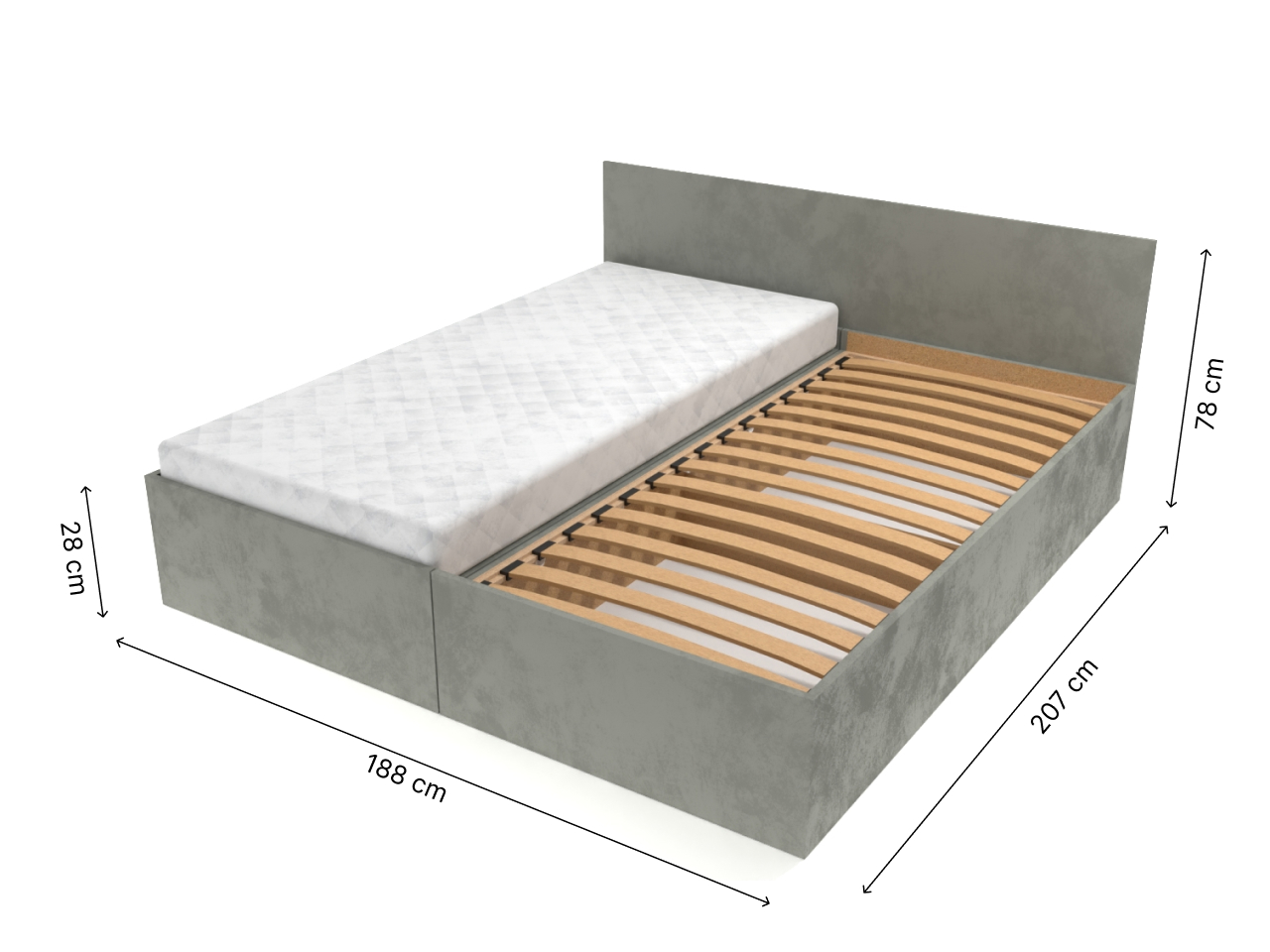 Pohodlná celočalúnená dvojposteľ pre Vašu relaxáciu a odpočinok. Dvojposteľ má pevnú konštrukciu z drevotrieskových dosiek. Posteľ je vybavená kvalitným lamelovým roštom, ktorého otvorením získate prístup k priestrannému úložnému priestoru, ktorý je vhodný na uloženie perín, vankúšov a ďalších vecí.