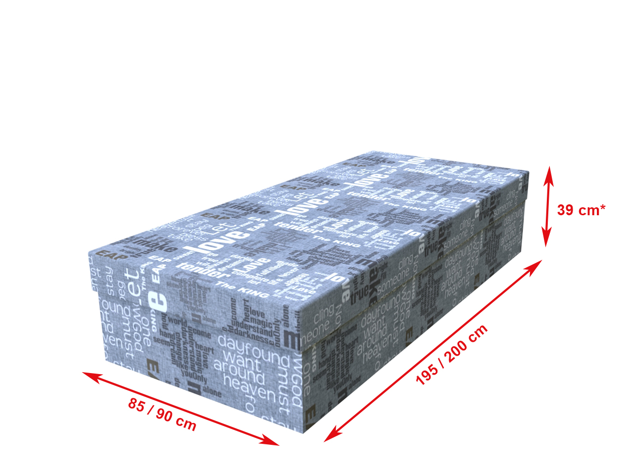 Polohovacia posteľ Words šedá 195x85 cm | Vzorované | S molitanovým matracom | Polohovacie postele | Nábytok, čalúnené váľandy a postele - PrimaSpánok.sk