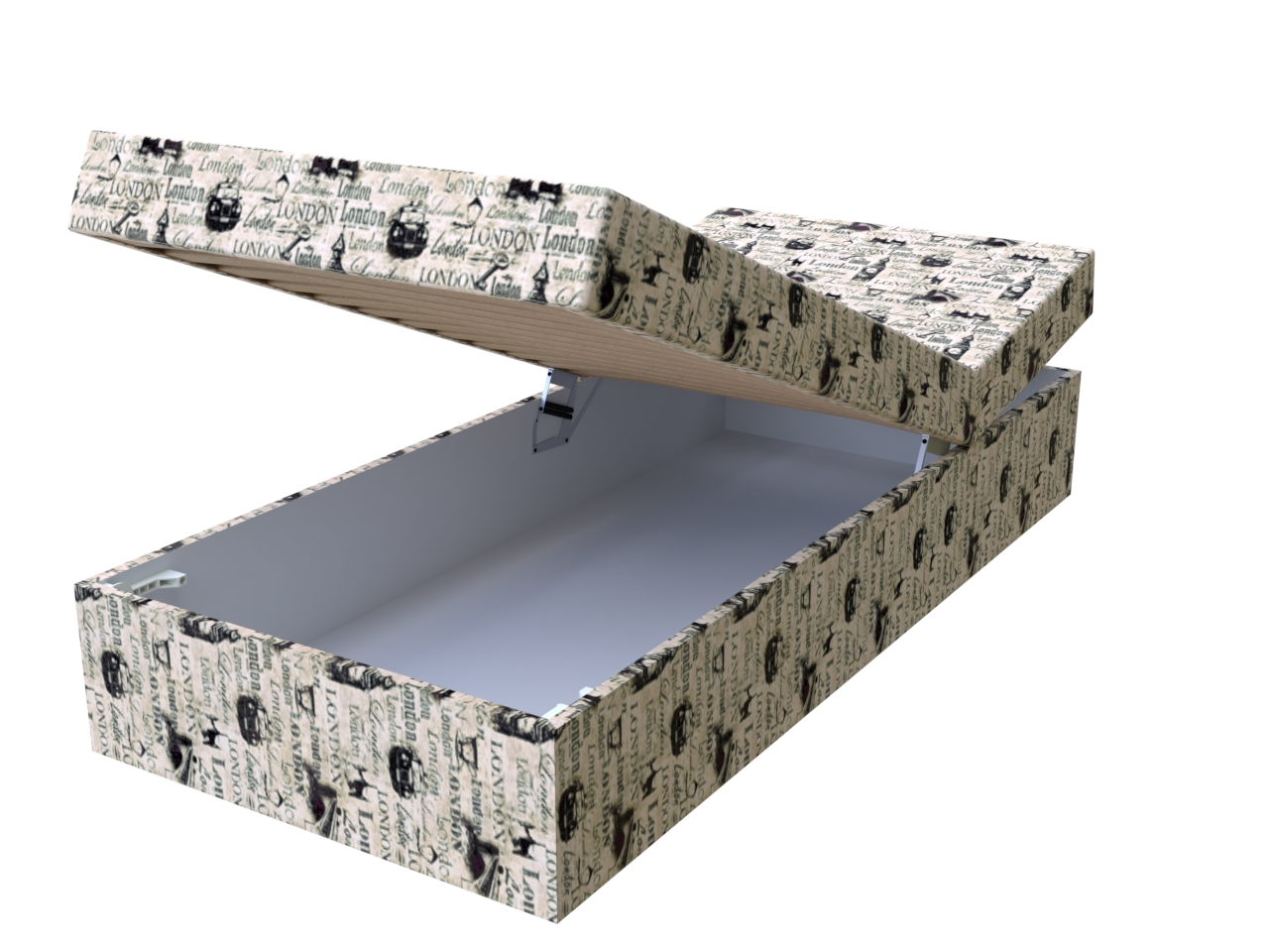 • Posteľ je vybavená kvalitným pružinovým mechanizmom, ktorý je možné polohovať pod hlavou a zároveň sa otvára od nôh pre prístup do úložného priestoru.