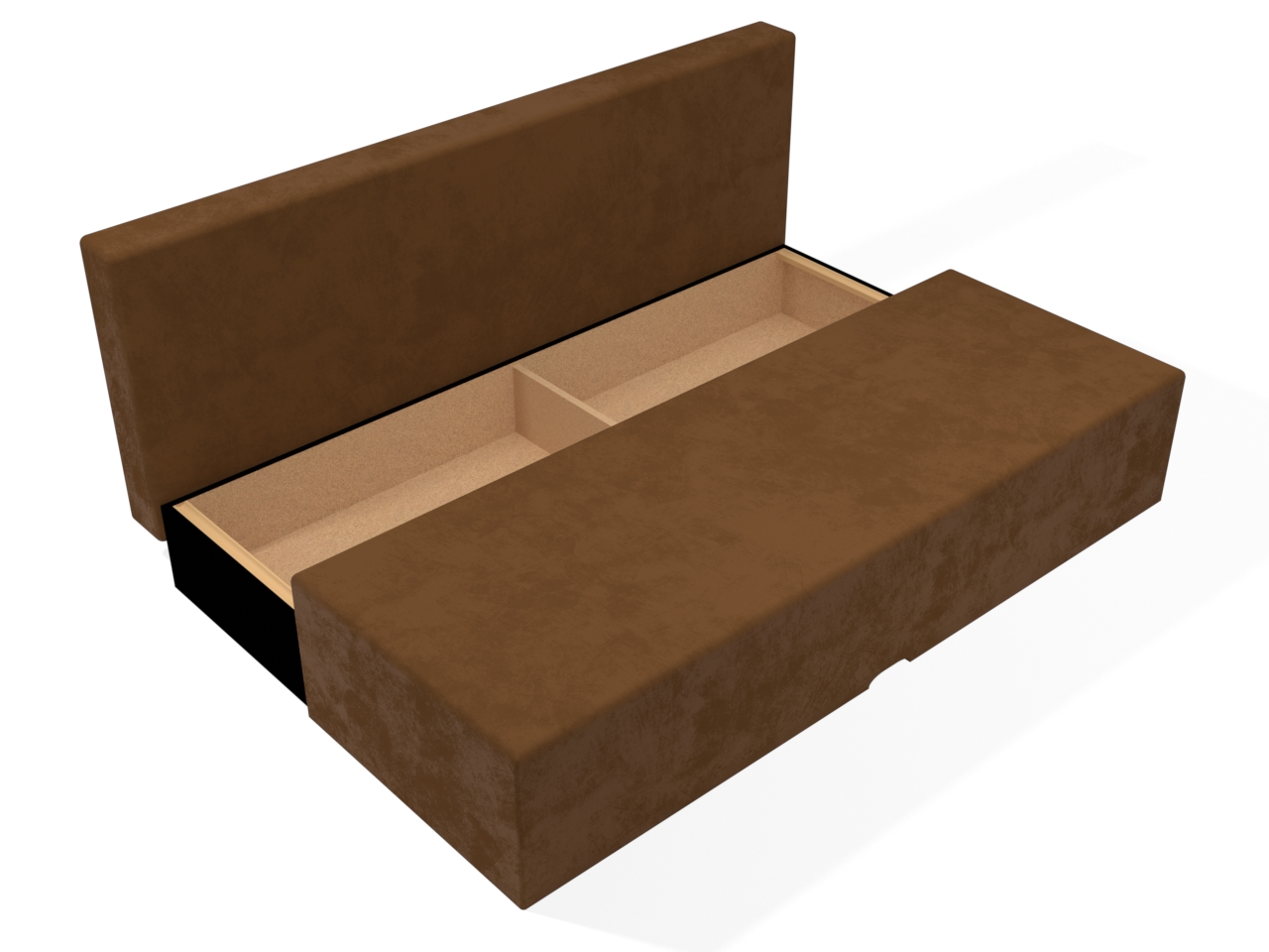 • Rozkladacia celočalúnená pohovka Karin na každodenné spanie s úložným priestorom zo surovej drevotrieskovej dosky a s pružinovým matracom