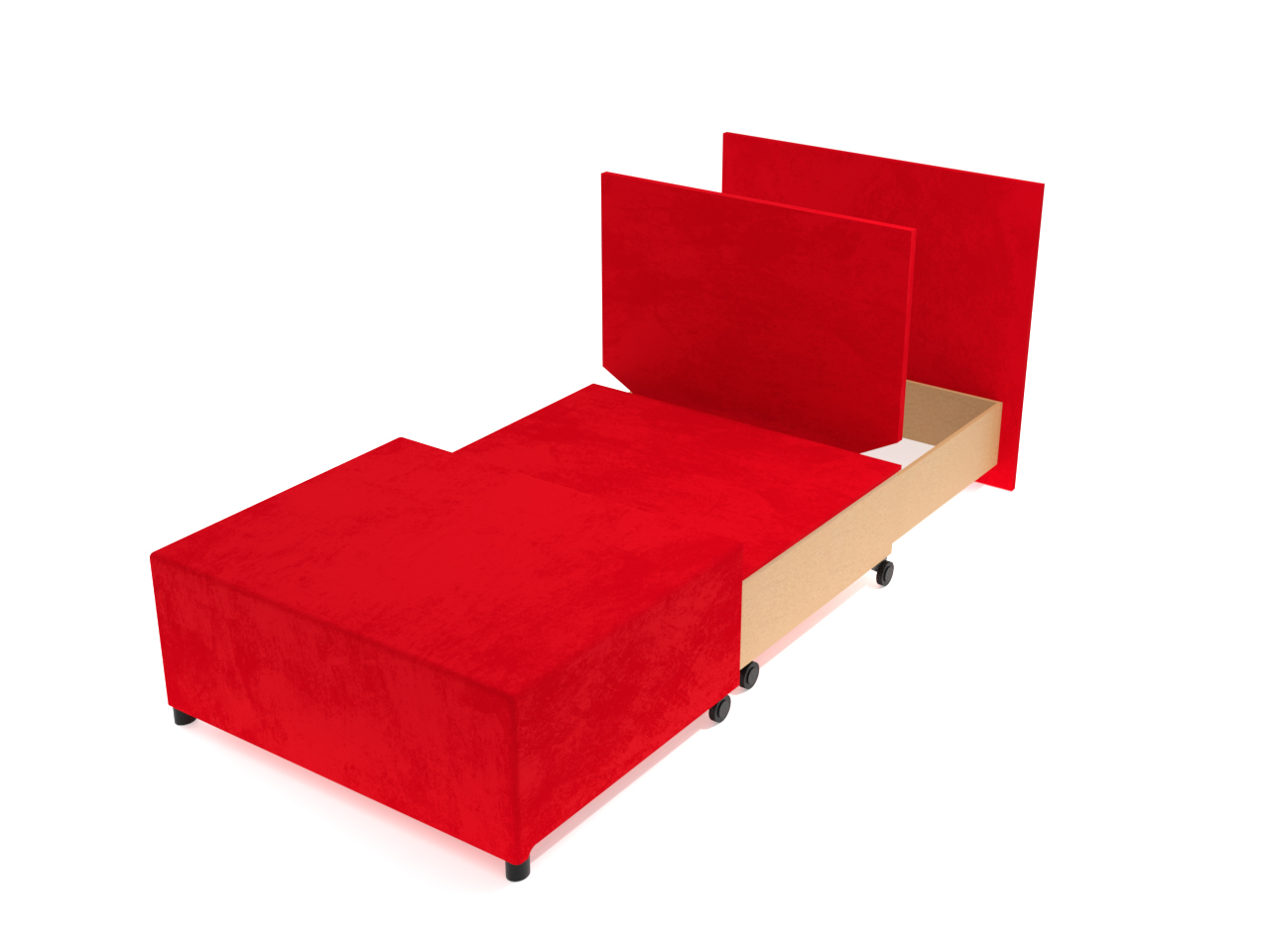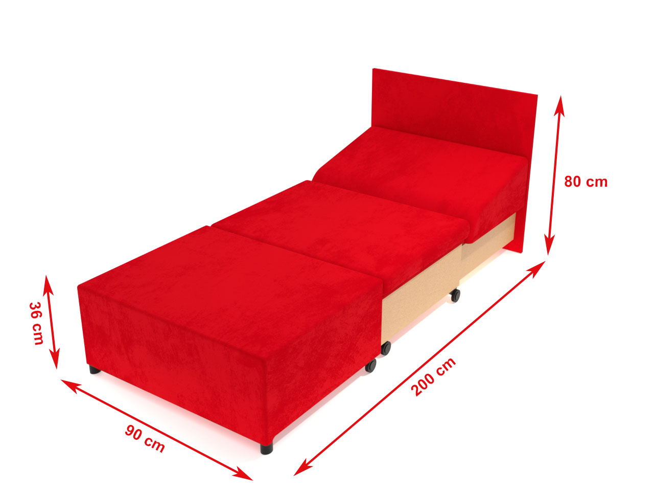 Moderné rozkladacie celočalúnené kreslo na každodenné spanie - s úložným priestorom zo surovej drevotrieskovej dosky a molitanovým matracom. Kreslo má výsuvný rozklad dopredu po záťažových plastových kolesách pre pohodlné rozloženie a prespanie Vás alebo Vašej návštevy. Pevný oporný vankúš na pohodlné sedenie, pri rozložení slúži ako klin pod hlavou.