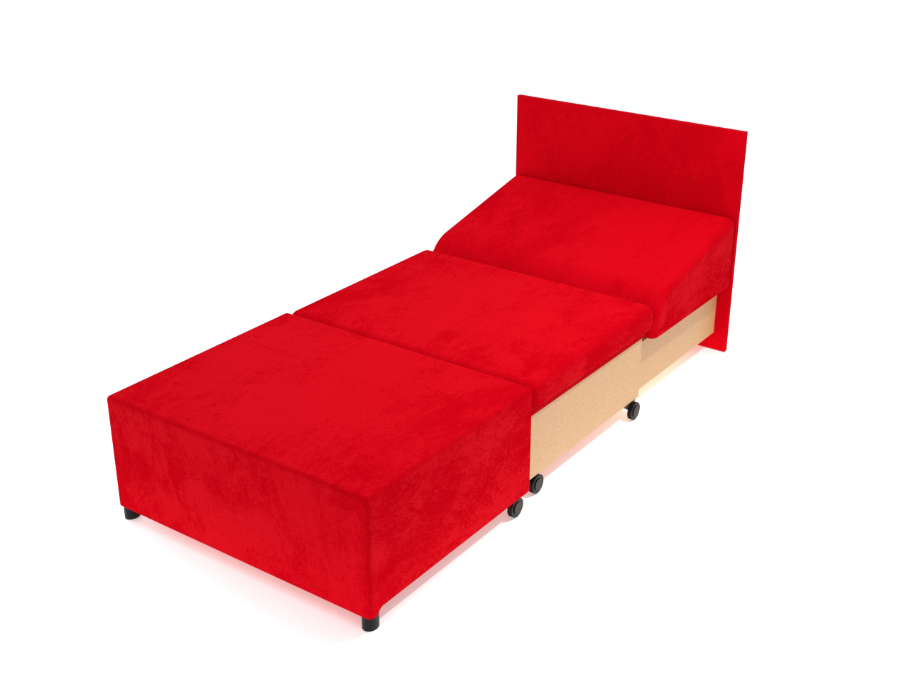 • Kreslo má výsuvný rozklad dopredu po záťažových plastových kolesách pre pohodlné rozloženie