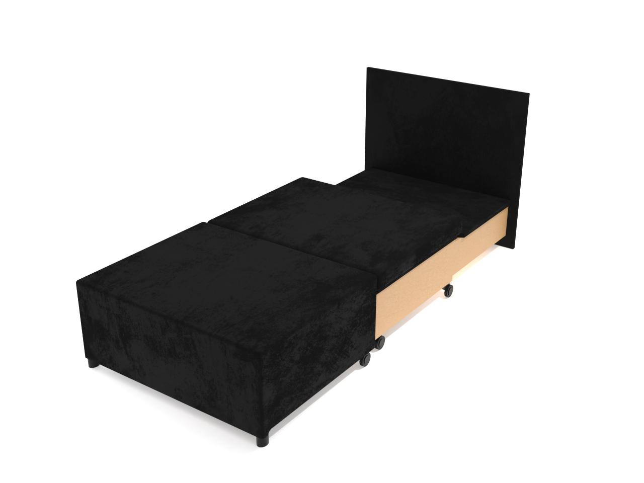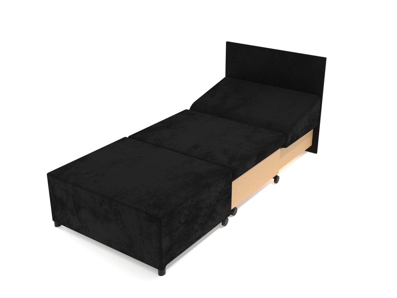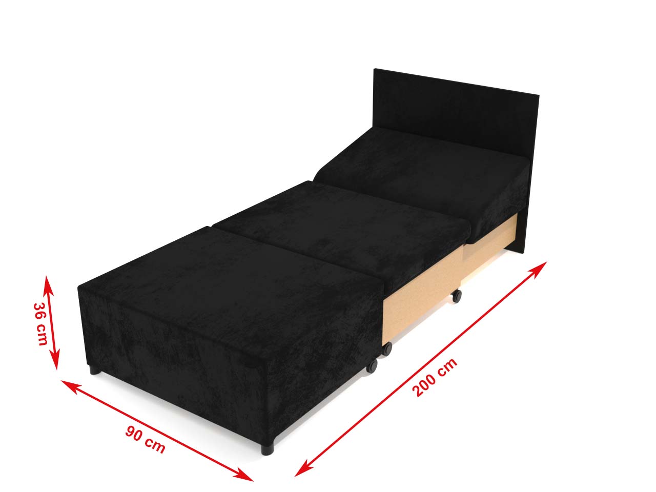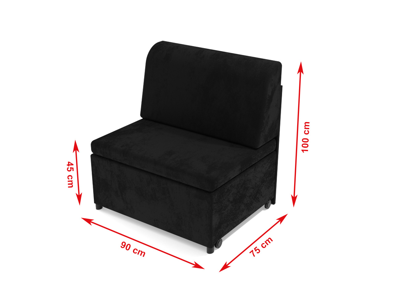 • Moderné rozkladacie celočalúnené kreslo na každodenné spanie - s úložným priestorom zo surovej drevotrieskovej dosky a molitanovým matracom