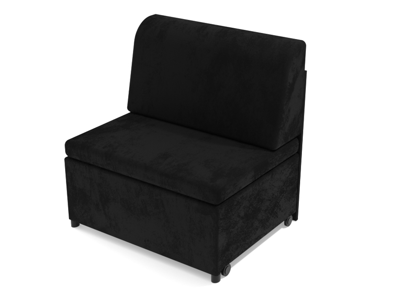 Moderné rozkladacie celočalúnené kreslo na každodenné spanie - s úložným priestorom zo surovej drevotrieskovej dosky a molitanovým matracom. Kreslo má výsuvný rozklad dopredu po záťažových plastových kolesách pre pohodlné rozloženie a prespanie Vás alebo Vašej návštevy. Pevný oporný vankúš na pohodlné sedenie, pri rozložení slúži ako klin pod hlavou.