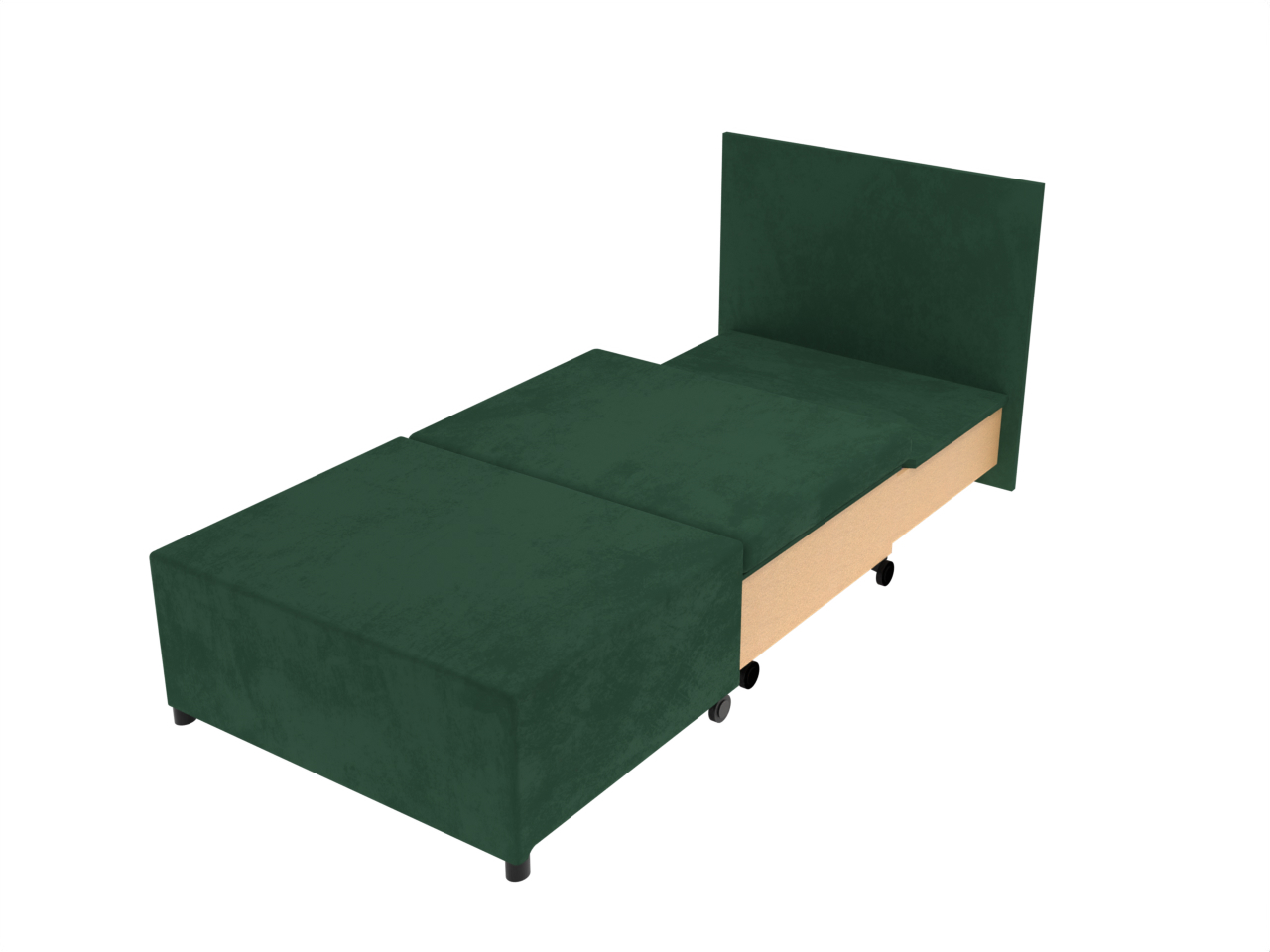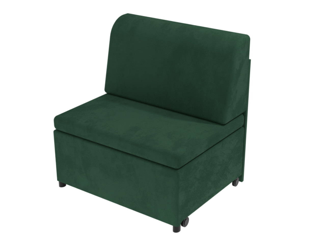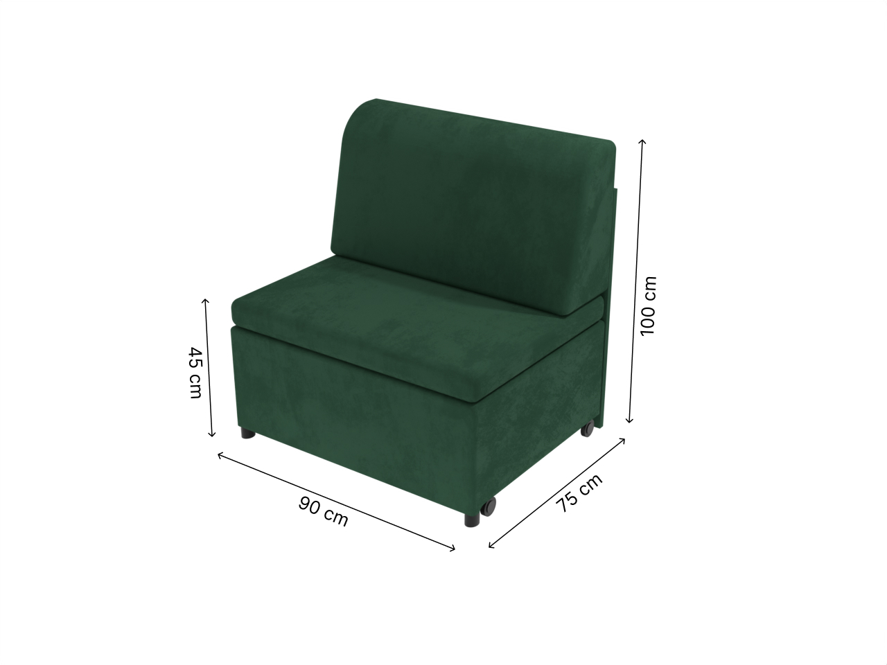 Moderné rozkladacie celočalúnené kreslo na každodenné spanie - s úložným priestorom zo surovej drevotrieskovej dosky a molitanovým matracom. Kreslo má výsuvný rozklad dopredu po záťažových plastových kolesách pre pohodlné rozloženie a prespanie Vás alebo Vašej návštevy. Pevný oporný vankúš na pohodlné sedenie, pri rozložení slúži ako klin pod hlavou.