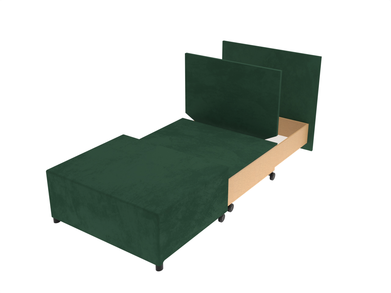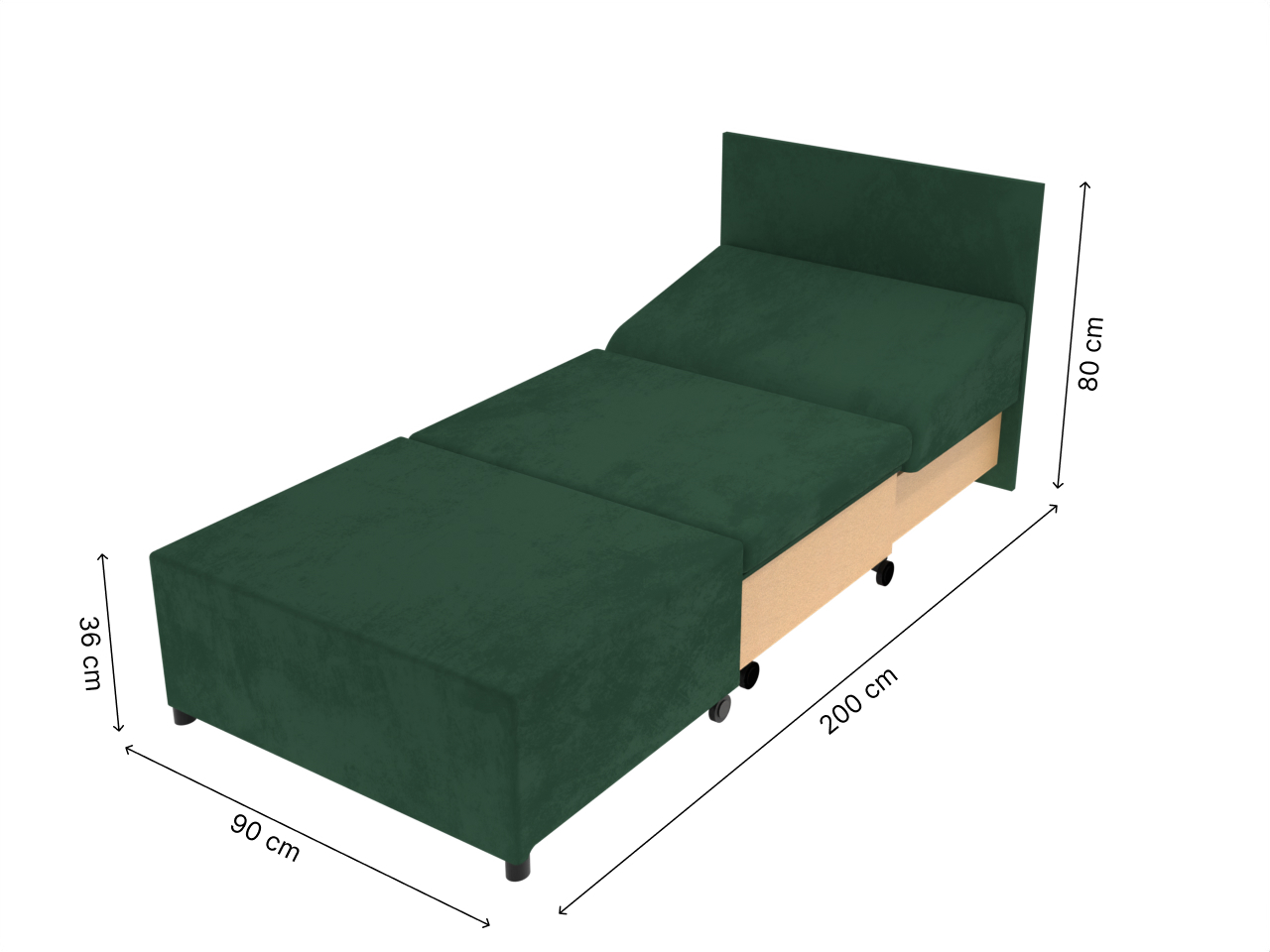 • Moderné rozkladacie celočalúnené kreslo na každodenné spanie - s úložným priestorom zo surovej drevotrieskovej dosky a molitanovým matracom