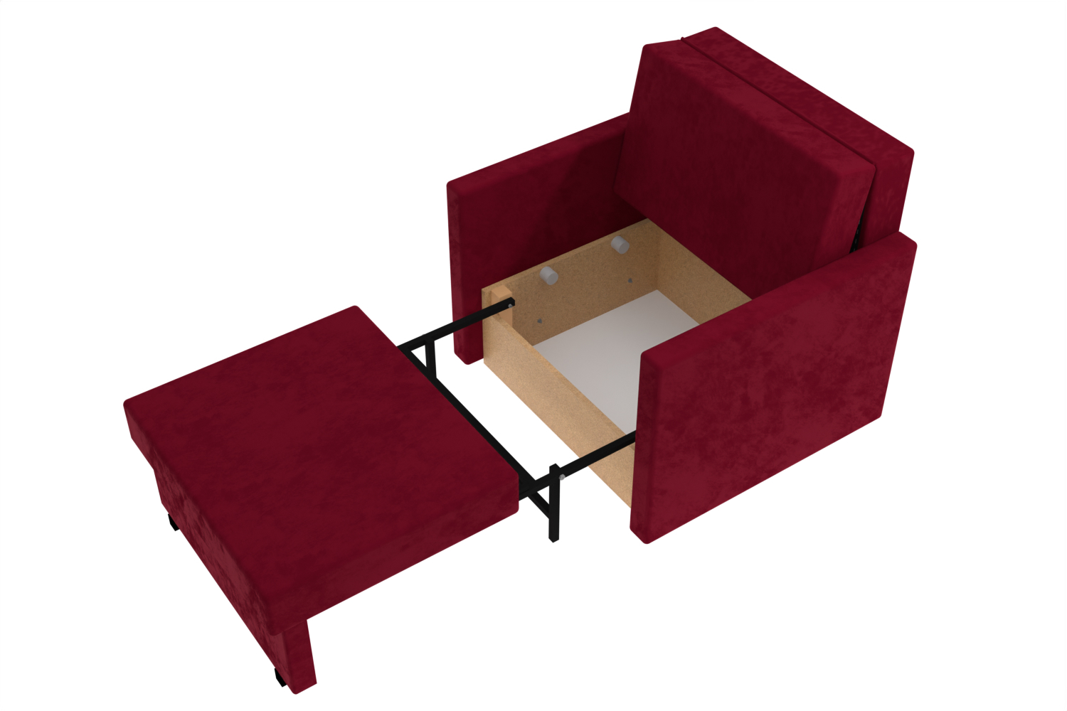 Vínové čalúnené rozkladacie kreslo s podpierkami rúk