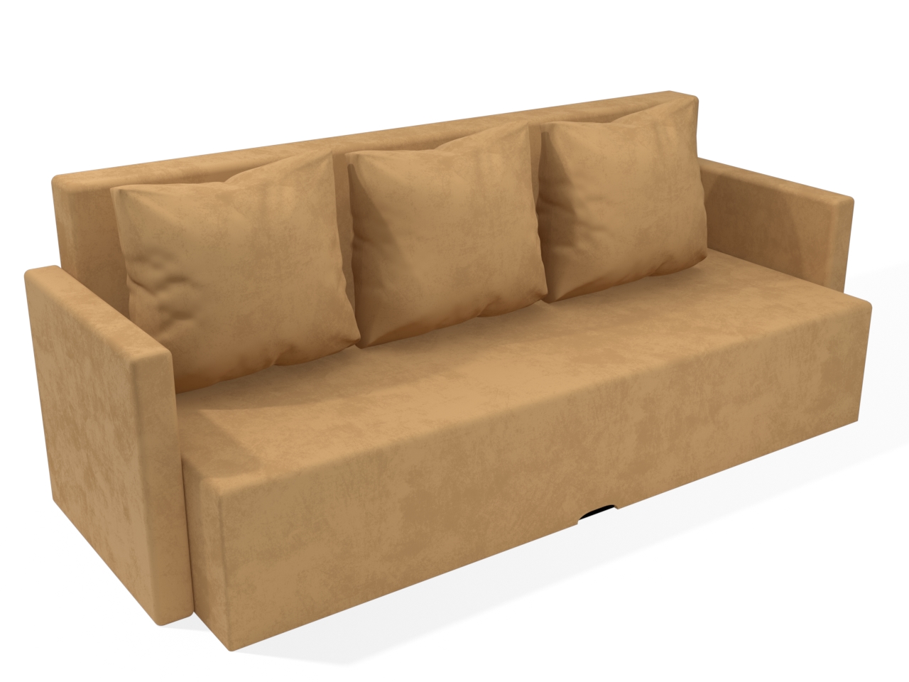 Rozkladacia celočalúnená pohovka s podrúčkami, na každodenné spanie s úložným priestorom, zo surovej drevotrieskovej dosky a s molitanovým či pružinovým matracom. Rozkladacia pohovka je dodávaná skompletizovaná v dvoch väčších kusoch + podrúčky, zabalená v kartóne a igelitovom obale. V cene produktu sú tri kusy vankúšov.
