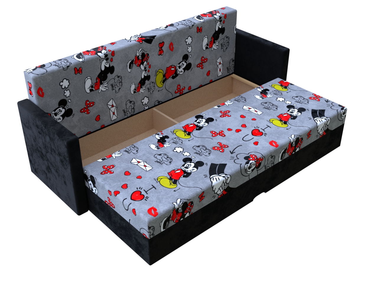 Rozkladacia pohovka Mickey červená/čierna s podrúčky