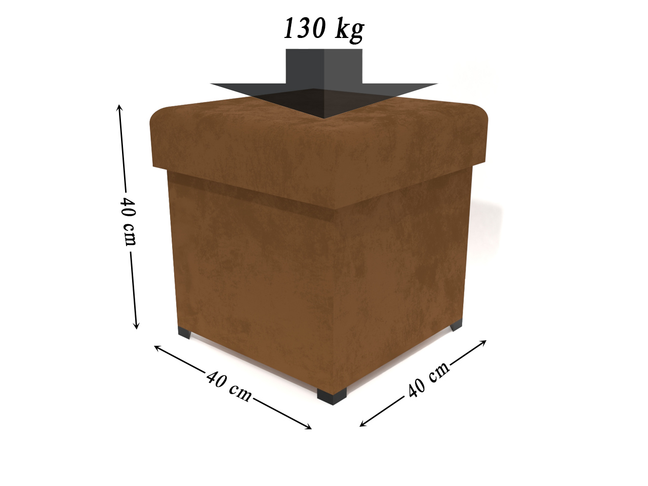 Čalúnený taburet Vám poslúži ako štýlový doplnok do vašej obývačky, ktorý použijete ako podnožku pod nohy, alebo ako ďalšie miesto na sedenie. Taburet má 10 cm vysoký matrac z polyuretánovej peny (PUR) v rozmere 40 x 40 cm. Výška taburetu je 40 cm. Taburet od českého výrobcu. Nosnosť taburetu je 130 kg.