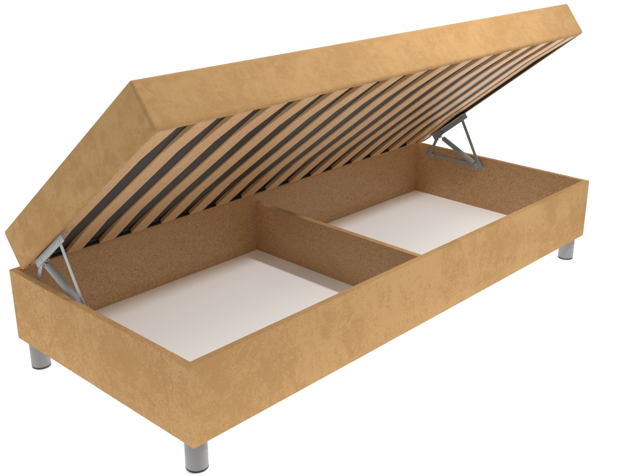 Moderná čalúnená váľanda na chrómových nohách patrí k obľúbeným typom jednolôžok. Válenda má nadštandardnú výšku ležacej plochy, čo uvítajú predovšetkým seniori. Válenda má pevnú konštrukciu z drevotrieskových dosiek, lamelový rošt a úložný priestor, ktorý sa otvára kvalitným pružinovým mechanizmom.