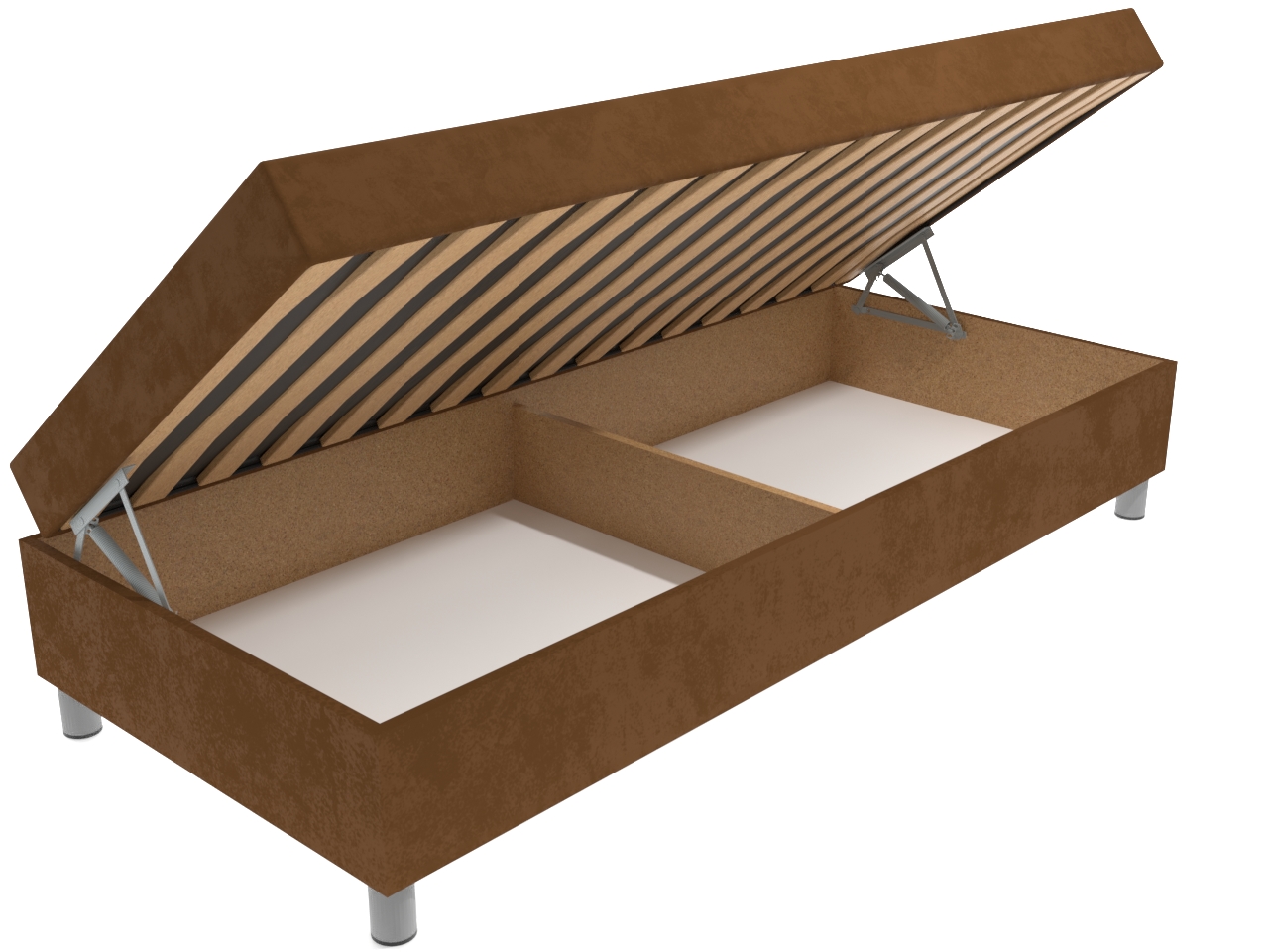 Moderná čalúnená váľanda na chrómových nohách patrí k obľúbeným typom jednolôžok. Válenda má nadštandardnú výšku ležacej plochy, čo uvítajú predovšetkým seniori. Válenda má pevnú konštrukciu z drevotrieskových dosiek, lamelový rošt a úložný priestor, ktorý sa otvára kvalitným pružinovým mechanizmom.