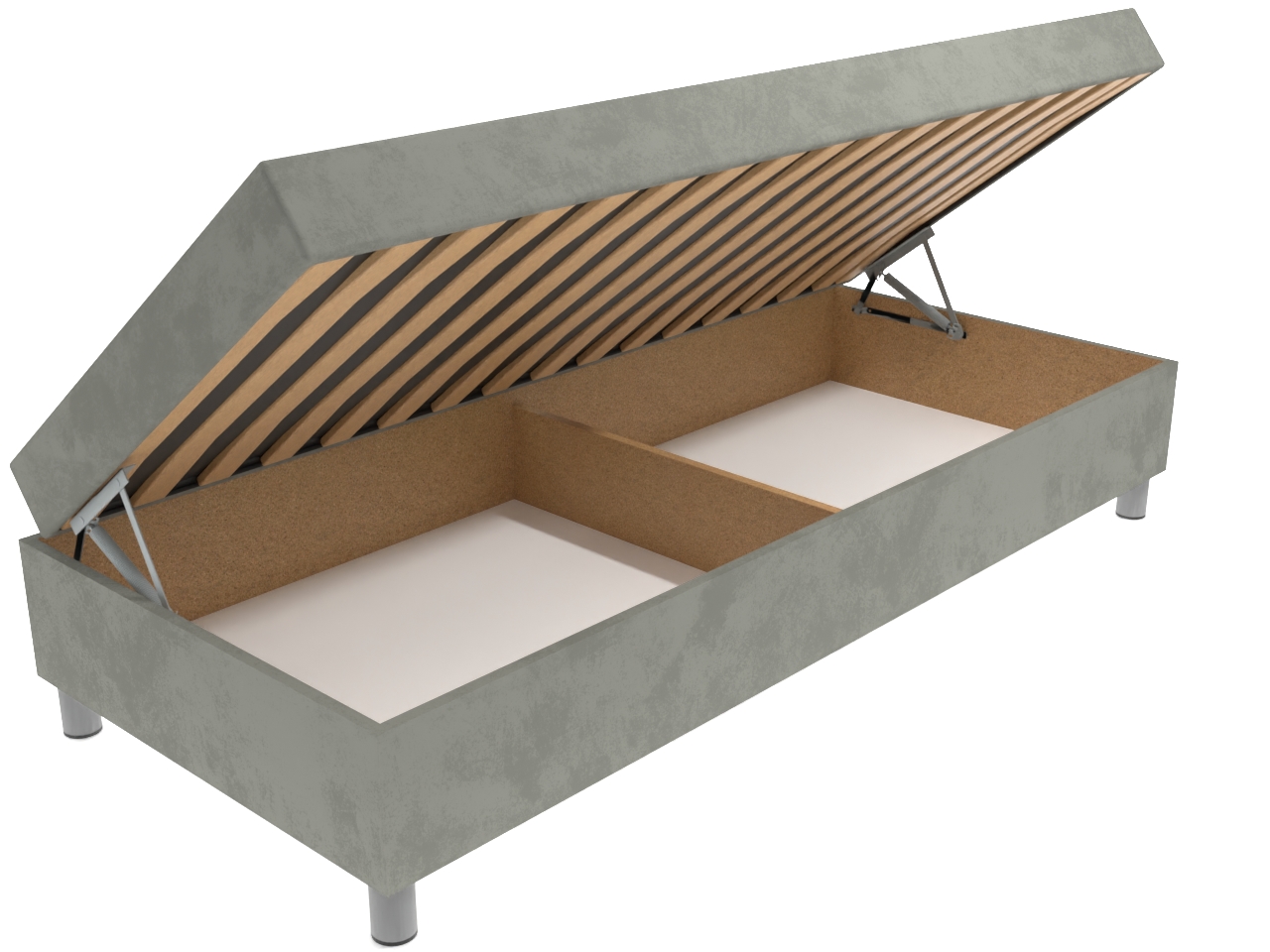 Moderná čalúnená váľanda na chrómových nohách patrí k obľúbeným typom jednolôžok. Válenda má nadštandardnú výšku ležacej plochy, čo uvítajú predovšetkým seniori. Válenda má pevnú konštrukciu z drevotrieskových dosiek, lamelový rošt a úložný priestor, ktorý sa otvára kvalitným pružinovým mechanizmom.